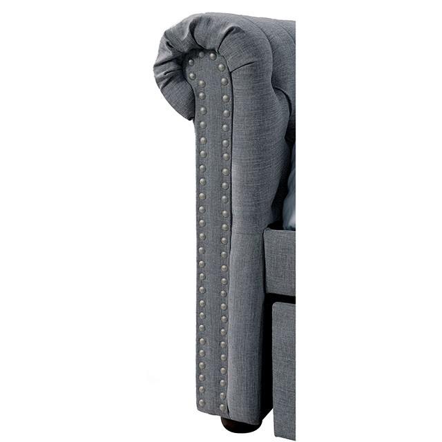 LEANNA Gray Daybed w/ Trundle, Gray, 96 3/4"L X 44 3/4"W X 36 1/2"H, 178.2lbs. An elegant take on the space-saving daybed structure, this twin size daybed and trundle set is a sophisticated alternative to traditional designs. This unique set draws inspiration from classic sofa designs with its rolled arms, button tufted backing and nailhead trim. The solid wood framework ensures durability while wrapped tightly with warm linen fabric. Features: Transitional Style Linen-Like Fabric Button Tufted Nailhead Trim Curved Arms Solid Wood, Wood Veneer, Others Gray