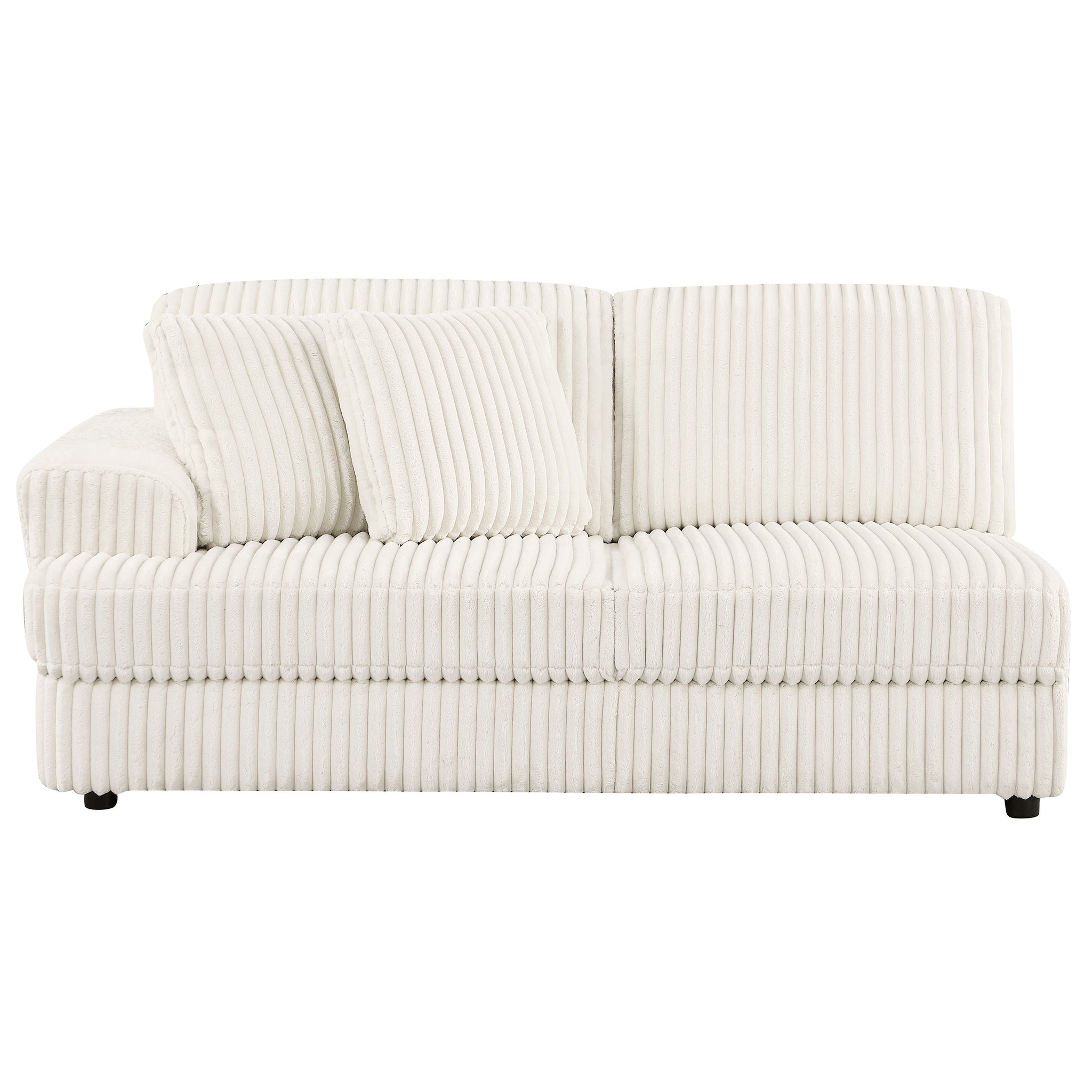 Start your sectional with the LAF loveseat, upholstered in ivory wide corduroy for a plush, fur-like texture. This piece includes two pillows for added comfort and style, making it a perfect addition to your modular setup.