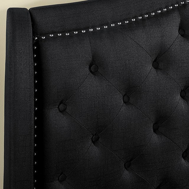 Upgrade your bedroom with some contemporary elements! The warm and dark tones of this platform bed will set the mood for relaxation so that, after a hard day's work, you will not be able to resist! The button tufted headboard with padded linen and nailhead trim works perfectly together to liven up any modern day home.