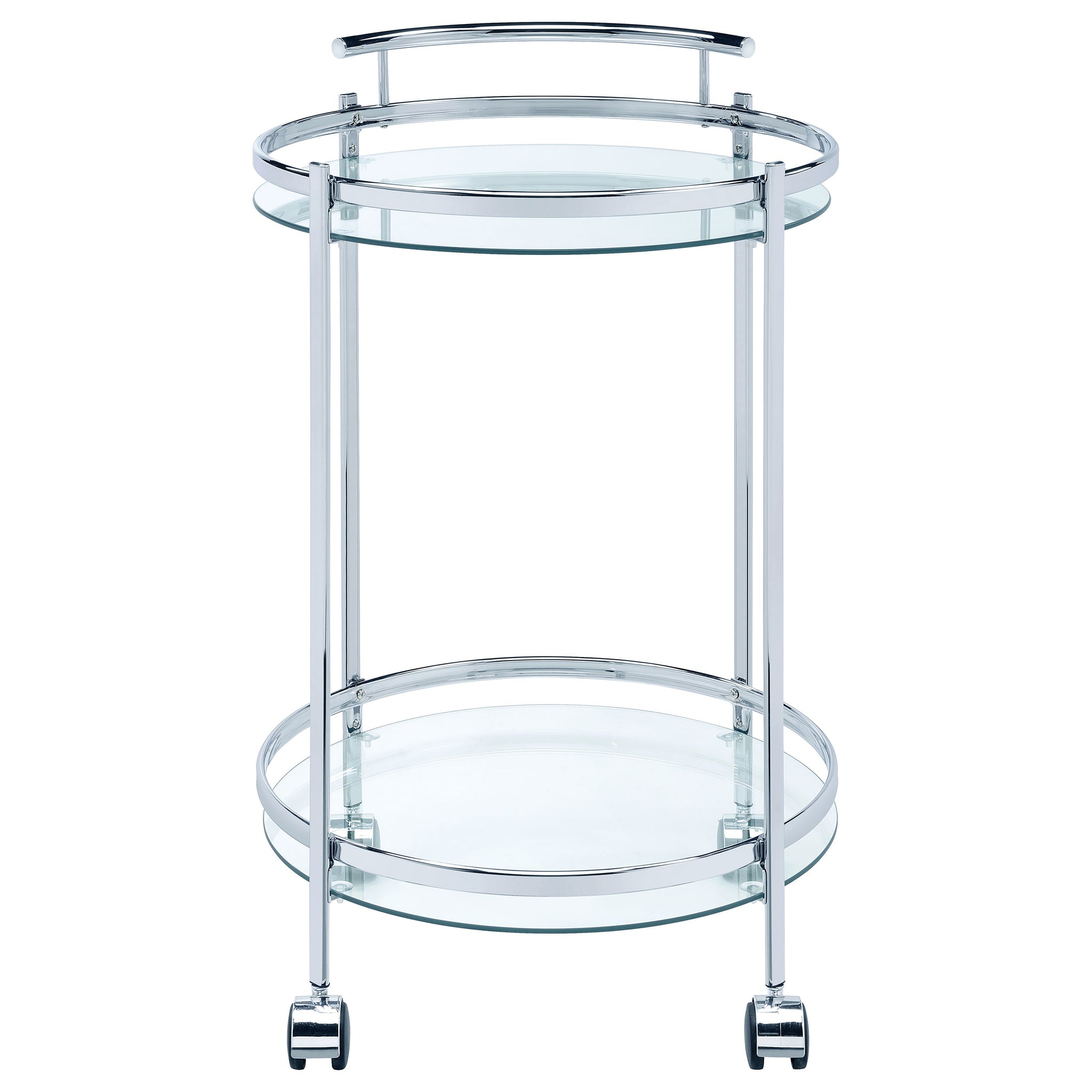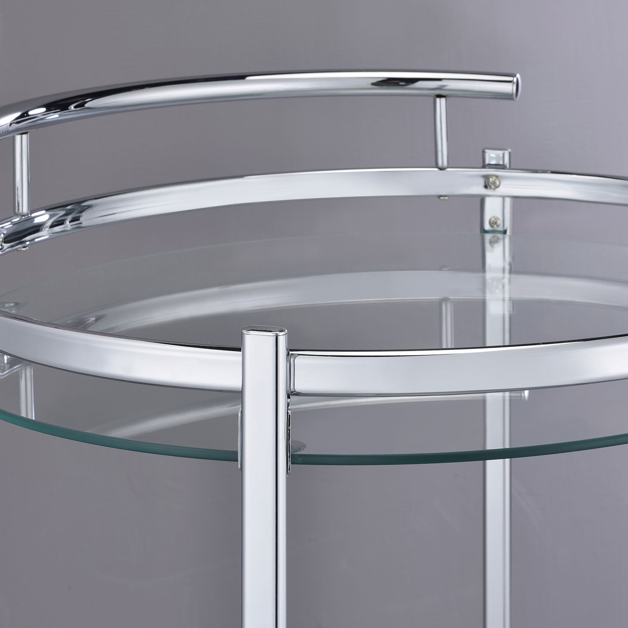 Perfect for entertaining, this modern, rolling bar cart glides from one space to the next. Caster wheels at the bottom even lock in place, creating extra stability as you pour a glass for guests. The slim, round, metal frame makes it a breeze to tuck the cart into corners to create an instant bar station and home bar in tight rooms. Elevating the overall look is a luxe metallic finish that gives off a modern glam aesthetic. Between the gleaming metal frame are tempered glass shelves, allowing light to shine through for a loftier look and feel. Key Features: • Captivating electroplated round bar cart with a harmonious fusion of design and practicality • Constructed from high-quality metal for durability • Two levels of exquisite clear tempered glass shelving offer generous storage space • Equipped with lockable caster wheels for seamless mobility and stability • Elevate your entertaining experience with this versatile and elegant bar cart, perfect for contemporary settings