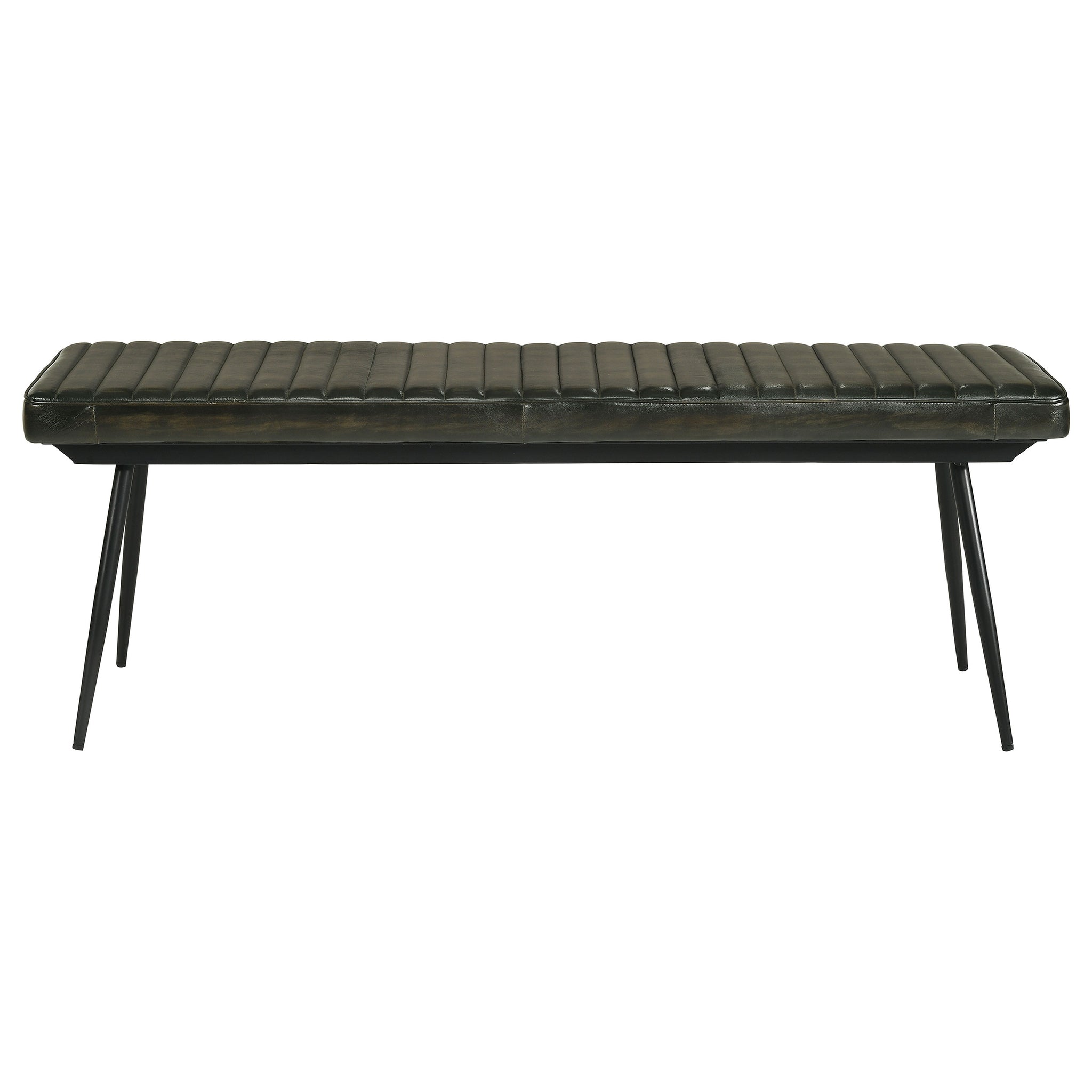 Blending rustic charm with industrial appeal, this dining bench is a bold yet versatile seating option. Upholstered in hand-dyed genuine goat leather, the padded seat with vertical tufting offers both comfort and durability. The sleek black metal base, featuring flared and tapered legs, provides a sturdy foundation with a modern edge. Designed to complement a variety of interiors, this bench is perfect for industrial, rustic, or contemporary dining spaces, offering both style and functionality. Key Features: • Dining bench with hand-dyed antique camel genuine goat leather upholstery • Padded seat with vertical tufting enhances comfort and vintage appeal • Sturdy black metal base with flared and tapered legs for stability • Strong metal frame ensures lasting durability for everyday seating • A stylish alternative to traditional chairs for a unique dining setup • Perfect for industrial, rustic, and modern farmhouse dining spaces