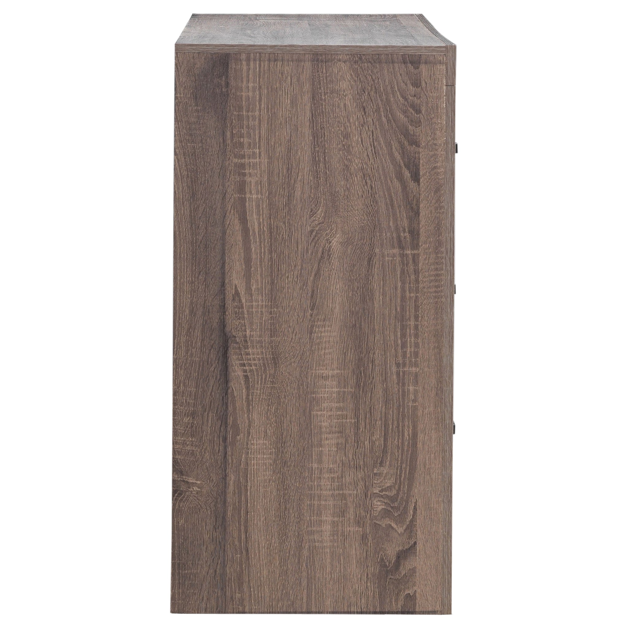 This six-drawer dresser offers a perfect balance of style and storage. Its clean-lined frame complements modern and contemporary spaces, while six spacious drawers provide ample room for clothing and accessories. Crafted from engineered wood with a durable laminate veneer, this dresser is built for everyday use. Matte dark bronze handles add a refined contrast, enhancing its sleek and functional design. Key Features: • Six-drawer dresser with a sleek and modern silhouette • Barrel oak finish enhances the natural wood grain-inspired look • Spacious drawers provide ample storage for clothing and essentials • Sturdy engineered wood construction ensures lasting durability • Matte dark bronze handles contrast beautifully with the finish • Durable laminate veneer resists scratches, stains, and wear