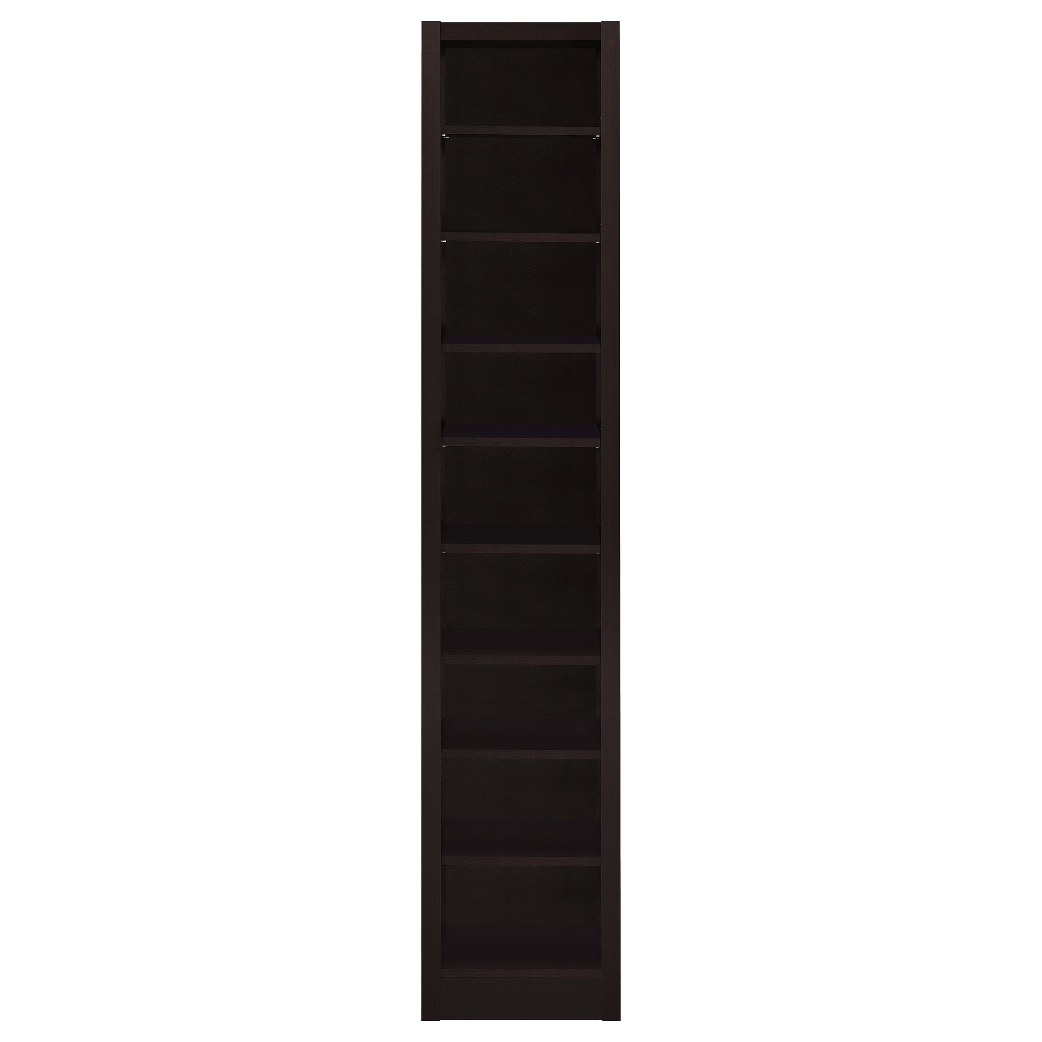 Maximize storage without sacrificing style with this tall, narrow bookcase in a deep cappuccino finish. Designed with a compact footprint, it features nine shelves—six of which are adjustable—to easily accommodate books, décor, or office supplies. Crafted from engineered wood and finished in a durable melamine veneer, this sleek bookcase adds a modern touch to any living room, bedroom, or home office.