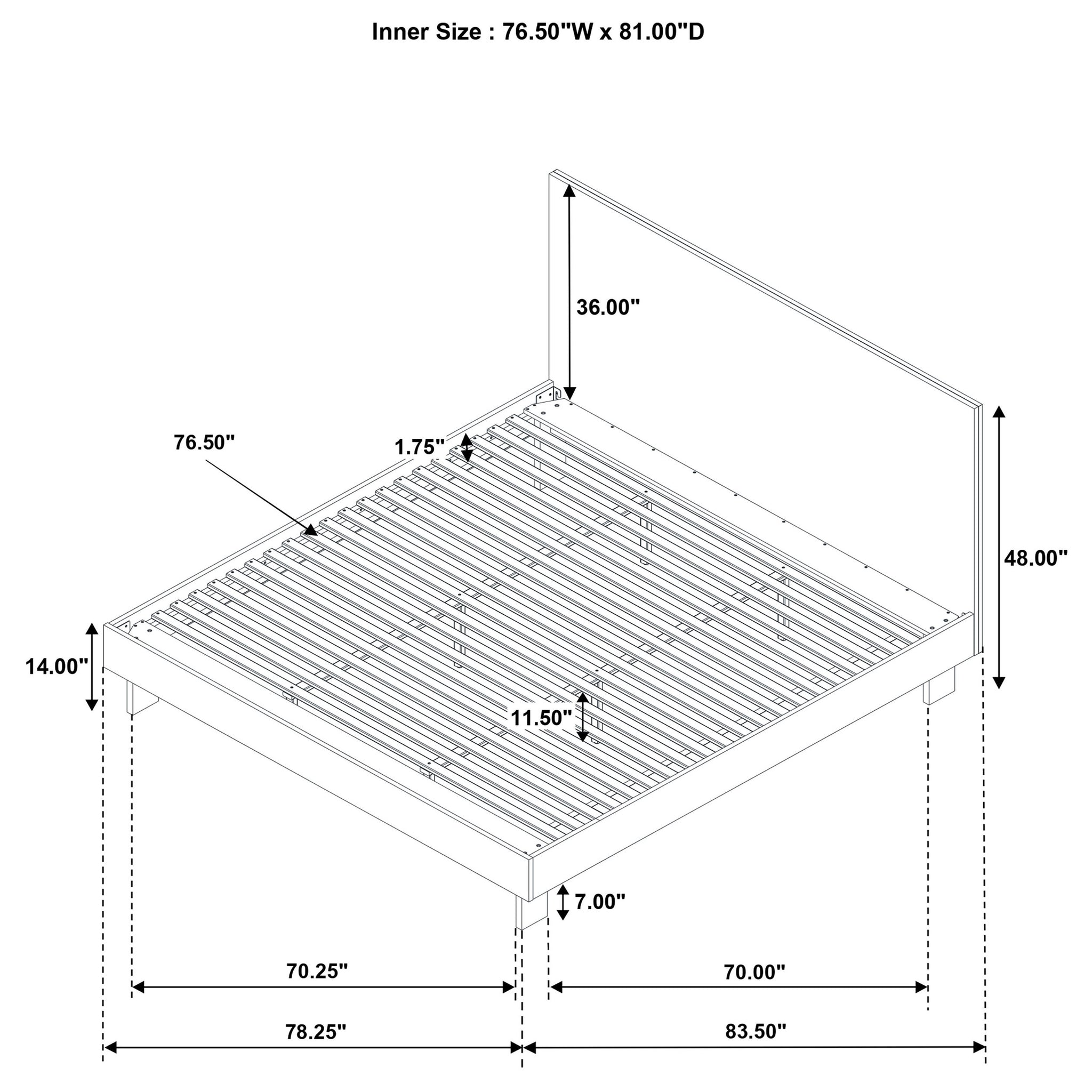 Create a handsome, refined space for rest and relaxation with this modern bedroom set. Crafted in solid wood with a warm brown finish, the set delivers a handsome bed and plenty of storage for clothing and accessories. The nightstand provides a perfect spot for a reading lamp and a great book. The dresser includes a framed mirror, adding lightness and reflectivity while providing a spot for grooming and beauty rituals. This stylish set features platform bed with a tall panel headboard and low rails, offering a refined, understated centerpiece in your bedroom. Key Features: • Clean, straightforward design details bring stylish flair to a modern bedroom set • Crafted from solid wood in a warm brown finish • A platform headboard is tall and solid, complete with sharp square corners for a handsome look • Top drawers include felt lining in a dark brown color, adding protection for delicate items • Drawers feature English dovetail joinery and metal glides for excellent performance