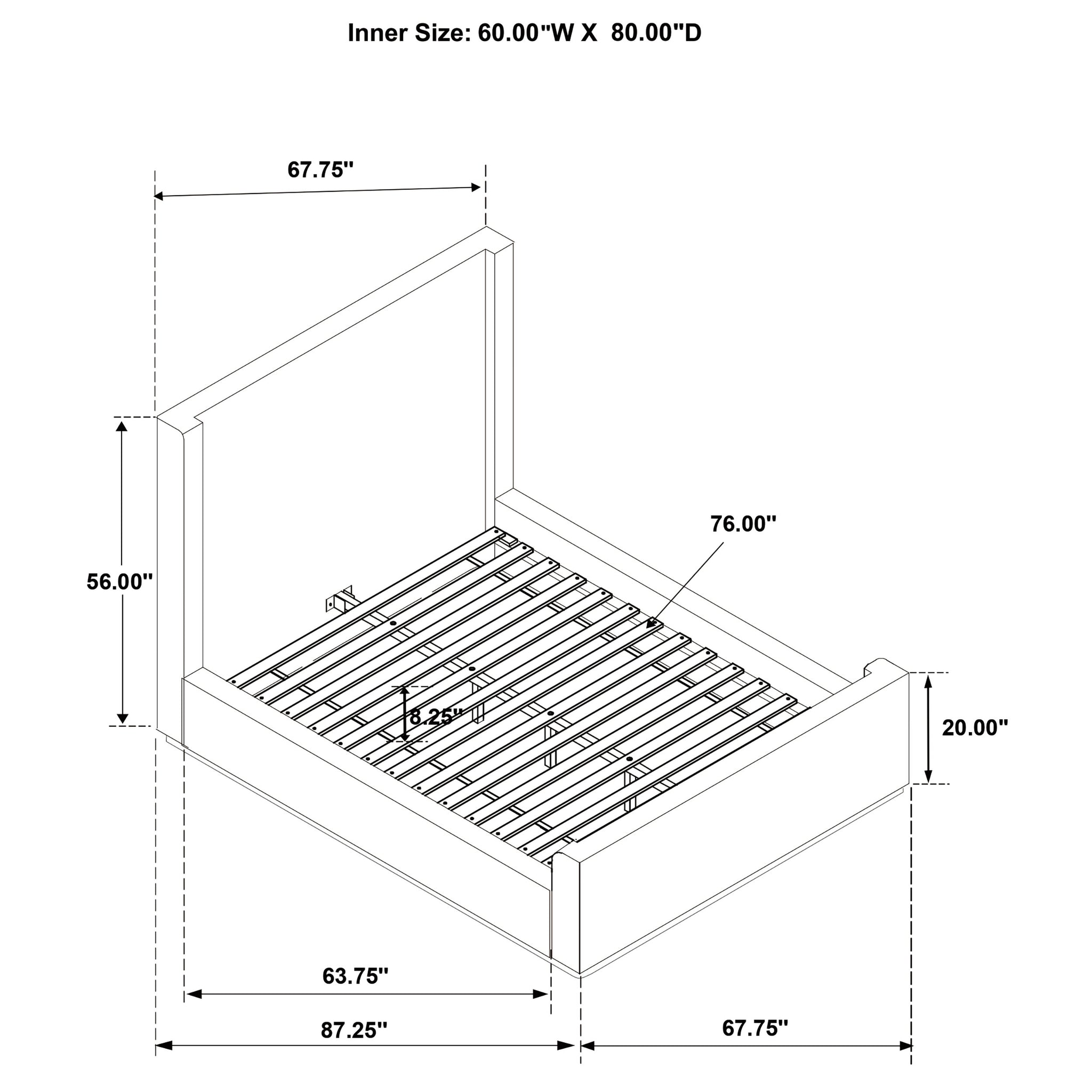 Straddling the line between modern and farmhouse, this upholstered platform bed makes a striking statement in any refined yet inviting bedroom. The tall wingback headboard and matching low footboard create a clean, grounded silhouette, while plush foam padding enhances comfort. Wrapped in soft cream boucle fabric, it delivers a cozy, on-trend texture. An exposed solid wood base in an oak finish adds warmth and contrast. Wooden slats and center support legs provide lasting stability for a restful night’s sleep.