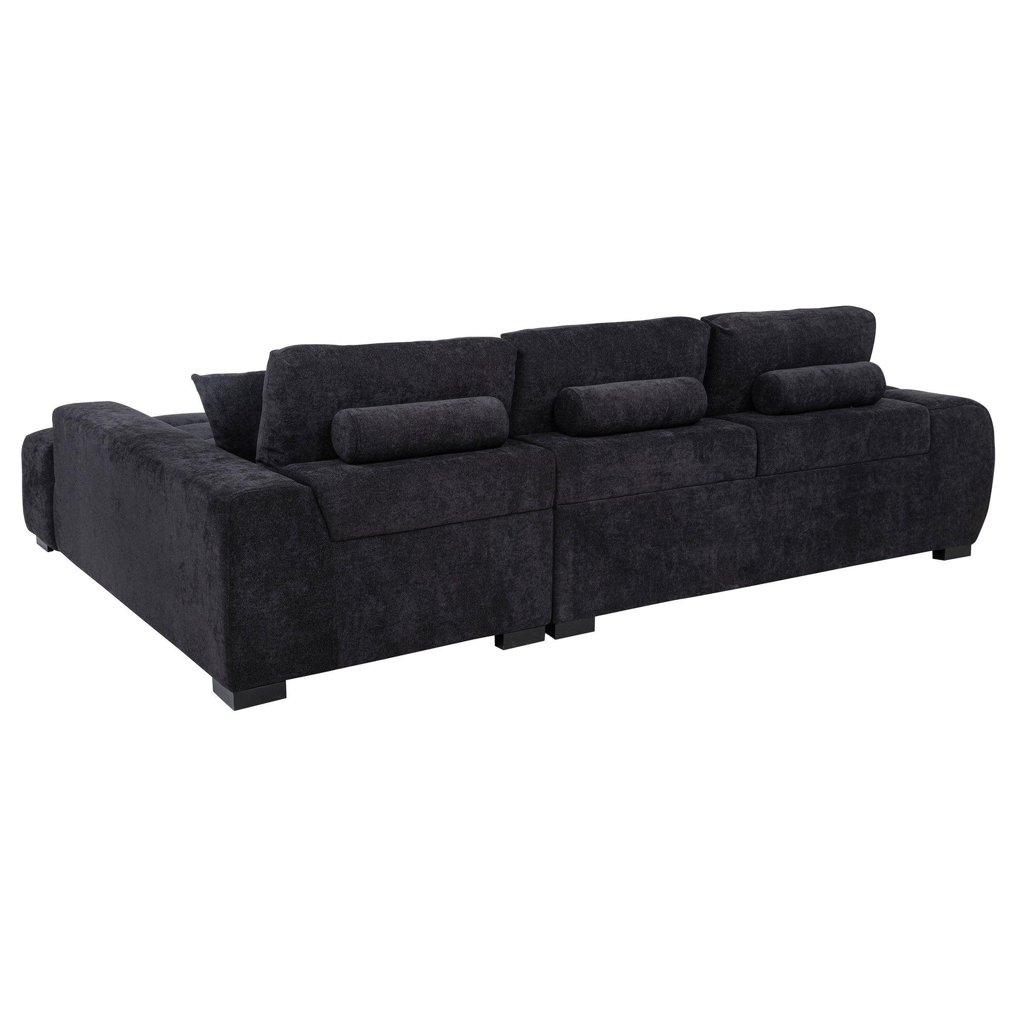 Embrace comfort and timeless style with this mid-century inspired sectional sofa. Designed for relaxed lounging, it showcases wide, rounded arms and plush waterfall seat cushions adorned with subtle grid tufting. Soft, neutral upholstery envelops a sturdy frame, ensuring lasting quality. Reversible back cushions and supportive accent pillows let you effortlessly customize your seating experience. The result is a captivating centerpiece that elevates any living area’s ambiance. Key Features: • Sectional in camel fabric features a sculpted right-side chaise for extended lounging • Grid-tufted waterfall seats offer continuous cushioning with mid-century appeal • Reversible back cushions provide flexible support and prolonged comfort • Accent pillows included for added softness and balanced visual layering • Low-profile base and wide track arms create a grounded, contemporary frame • Upholstered in smooth fabric with bold vertical channels for texture and warmth