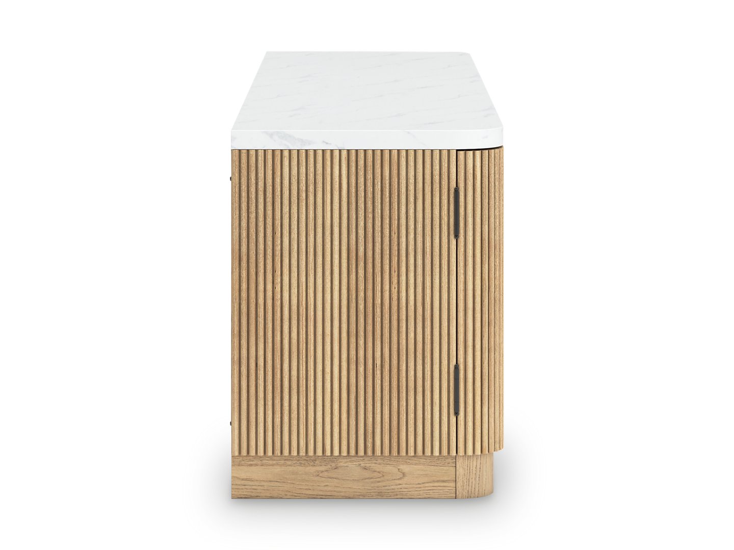 Elegance meets earthy charm in this TV stand. Crafting a contemporary living room? The faux marble top expertly pairs with the reeded base for a trend-right take on day-to-day function. Open shelving and subtly integrated storage cabinets make it easy to store and display media accessories in style.