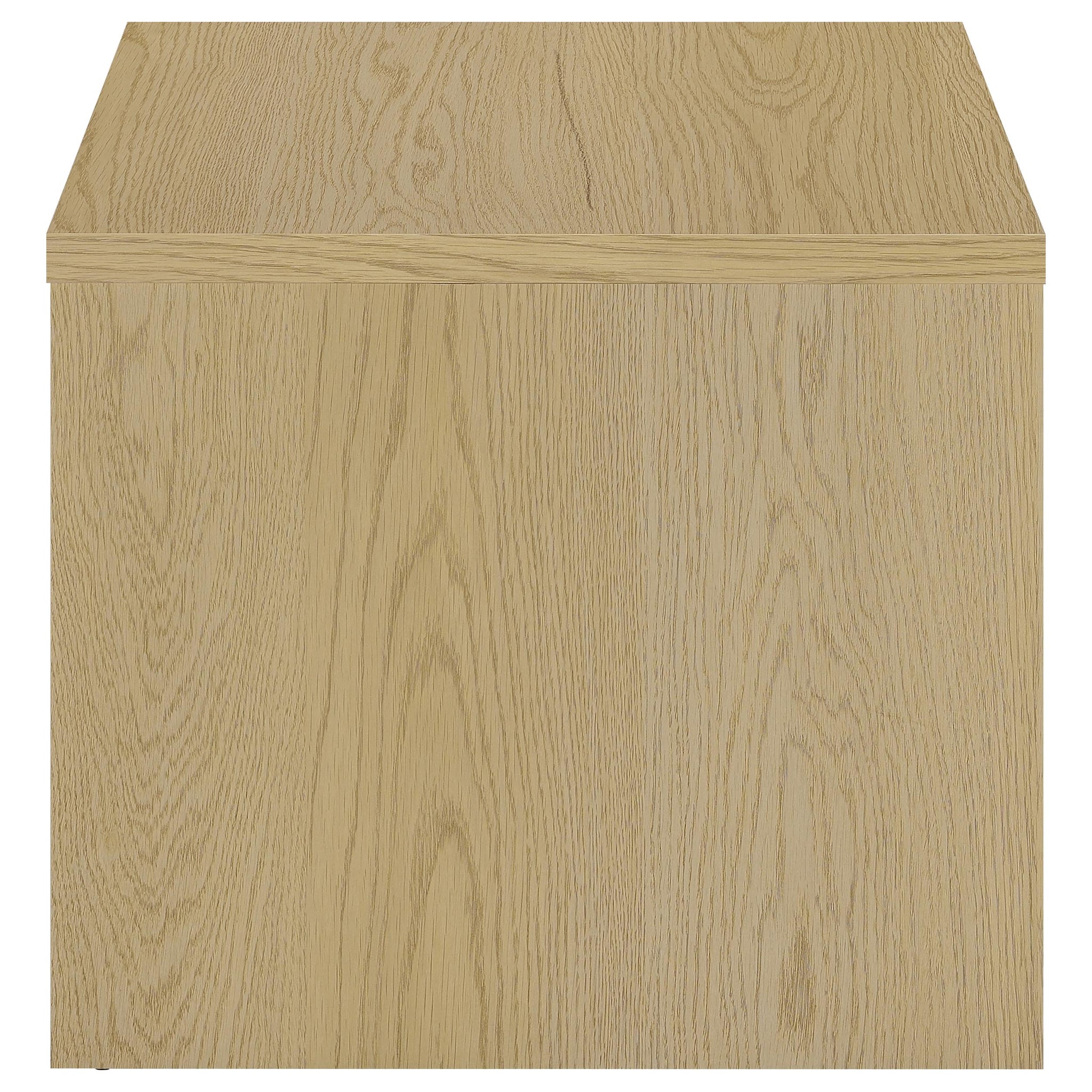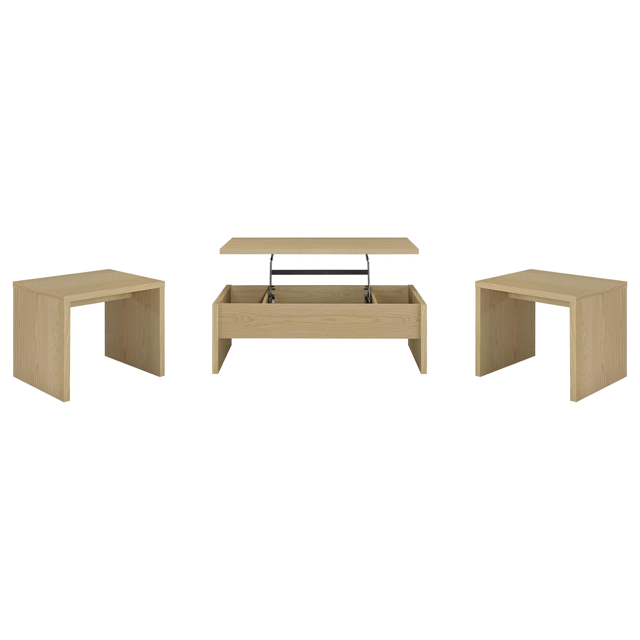 Rooted in clean geometry and modern ease, this coffee table set brings versatile function and understated style to any living space. The lift-top cocktail table offers hidden storage beneath a smooth surface that rises to meet your needs, while the coordinating end table features an open, minimalist form. With crisp lines, durable construction, and a warm woodgrain texture, this set blends casual utility with quiet sophistication for everyday living. Key Features: • Coffee table set with minimalist silhouettes and natural wood-inspired light oak finish • Lift-top coffee table features hidden storage for everyday essentials and remotes • Matching end table provides open sides and sturdy surface for lighting or décor • Flat tops offer generous space for books, trays, or casual entertaining • Crafted from engineered wood with melamine veneer for durability and easy care • Perfect for modern or transitional living rooms seeking functional, grounded design
