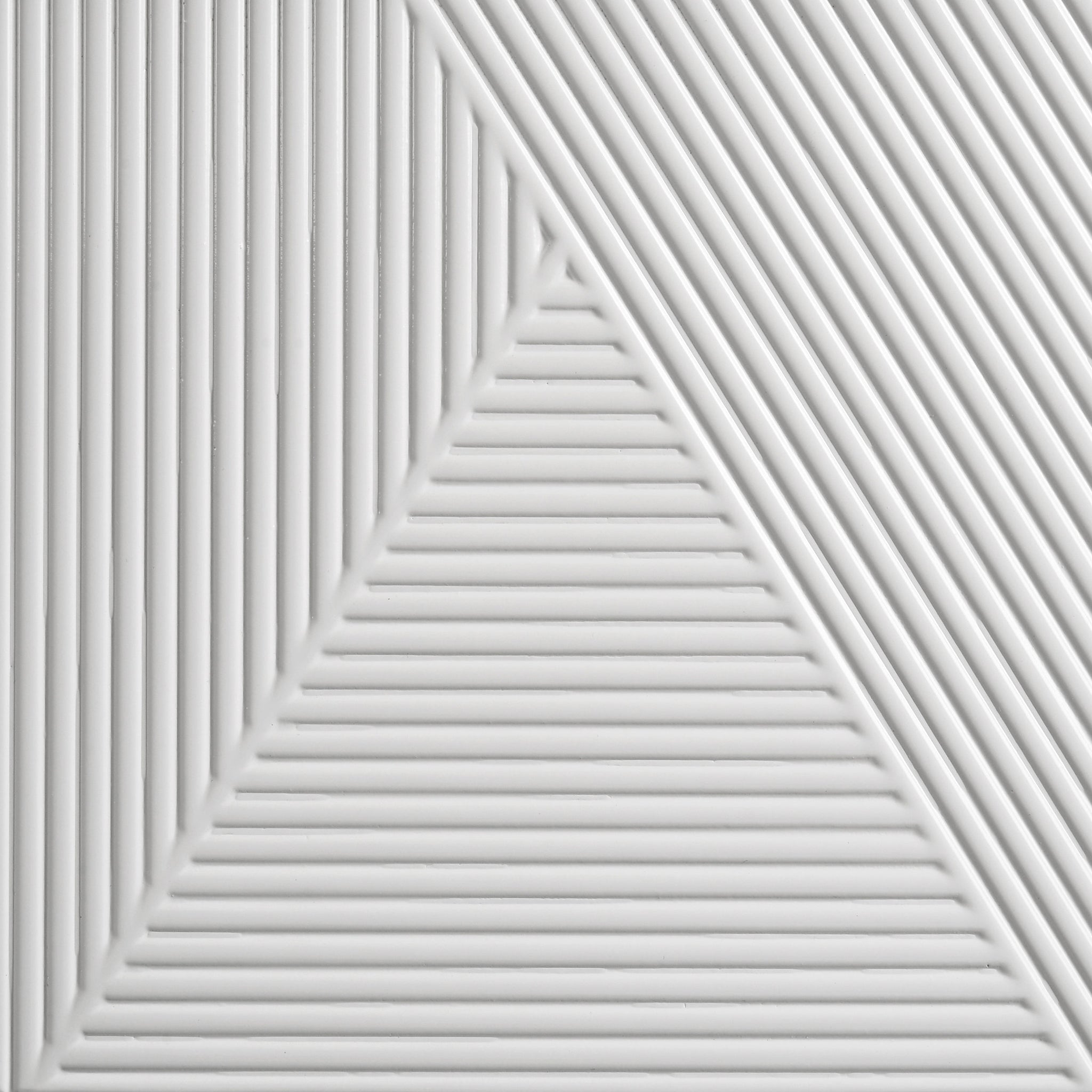 Crisp white high gloss and sculptural textures define this modern bedroom set, blending sleek surfaces with dimensional details. Geometric drawer fronts feature ribbed V-patterns and polished chrome pulls, while all drawers glide smoothly on 45mm metal extension hardware. The headboard stands out with chevron-tufted white faux leather framed by soft white LED trim. Completing the ensemble, a coordinating LED dresser mirror adds ambient glow and polished symmetry to the space. Elevated on chrome legs, this set is a showcase of contemporary form and function. Key Features: • White high gloss bedroom set with sculpted drawer fronts and chevron-tufted LED headboard • LED dresser mirror adds ambient lighting and visual symmetry to the modern design • All drawers include 45mm metal extension glides for smooth and reliable performance • Top drawers are fully lined in black felt to protect valuables and add elevated utility • Chrome U-shaped pulls and tapered acrylic legs provide sleek contrast and support • Crafted from engineered wood and faux leather for durability and shine