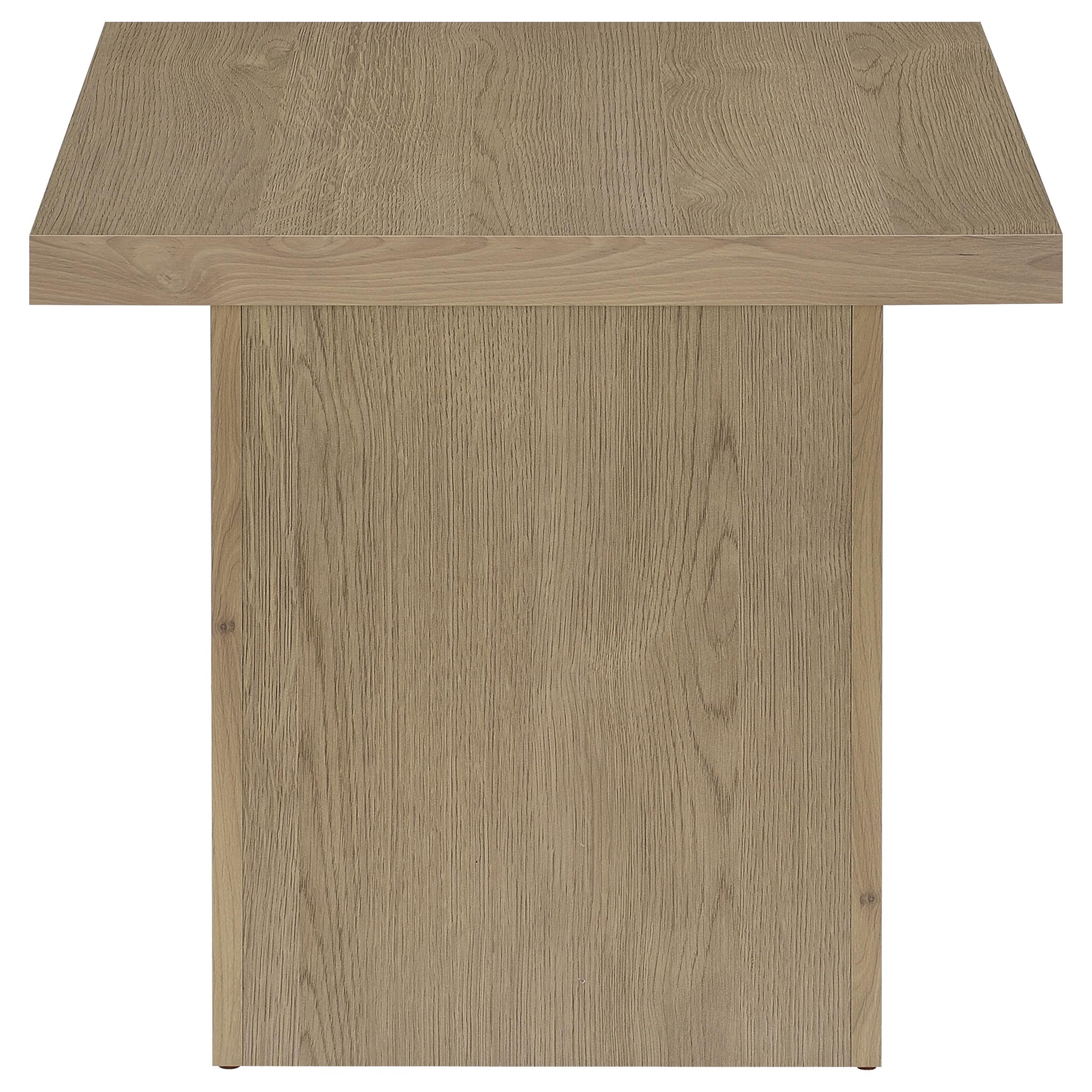 The simplicity of a versatile and nature-inspired addition to casual spaces whets your appetite and keeps you focused on where to place this modern end table. Sidled up to a chair or sofa, or standing alone, the accent side table is in touch with the rustic side of décor created to add an earthy influence. Natural mango finish wood products and hollow board construction showcases the authentic look of wood grain striping. Clean lines flatter a square tabletop and oversized block base, adding a low-key yet attractive ambiance ideal for your easy-living rooms. Use this table to accompany a seating piece or as a standalone display table for plants and décor. Key Features: • End table crafted from engineered wood with laminate veneer for long-lasting quality • Features a natural mango wood look with wood grain markings for rustic charm • Square tabletop and oversized block base offer modern style and stability • Low-profile design adds a clean, casual aesthetic to living room settings • Eco-friendly laminate veneer creates a durable, scratch-resistant surface • Perfect as a side table next to a chair or sofa, or as a standalone display piece