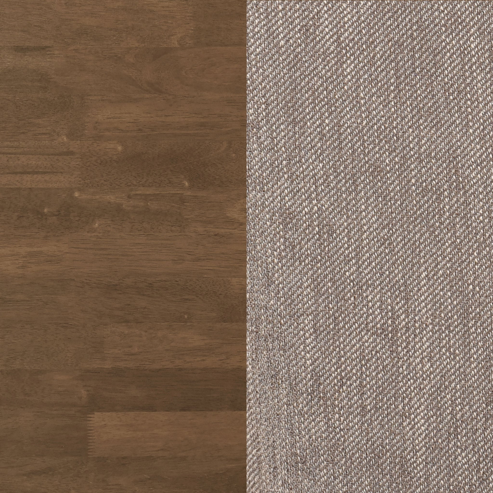 Small kitchens and dining spaces take an early style lead with a casual dining set targeted at versatility and mid-century modern creds. This beautifully designed five-piece set offers construction of walnut finish Asian hardwoods, warm and inspiring of a coastal or Euro look. A convex tabletop profile embellishes the already fresh style of a geometric base with angled open sections interlocking at the base, forming a symmetrical and quirky design with extra verve. Four chairs are charming with a curved, slender back and accents, tapered legs and foot rails. Padded seat cushions with moderate molding are upholstered with neutral brown fabric.