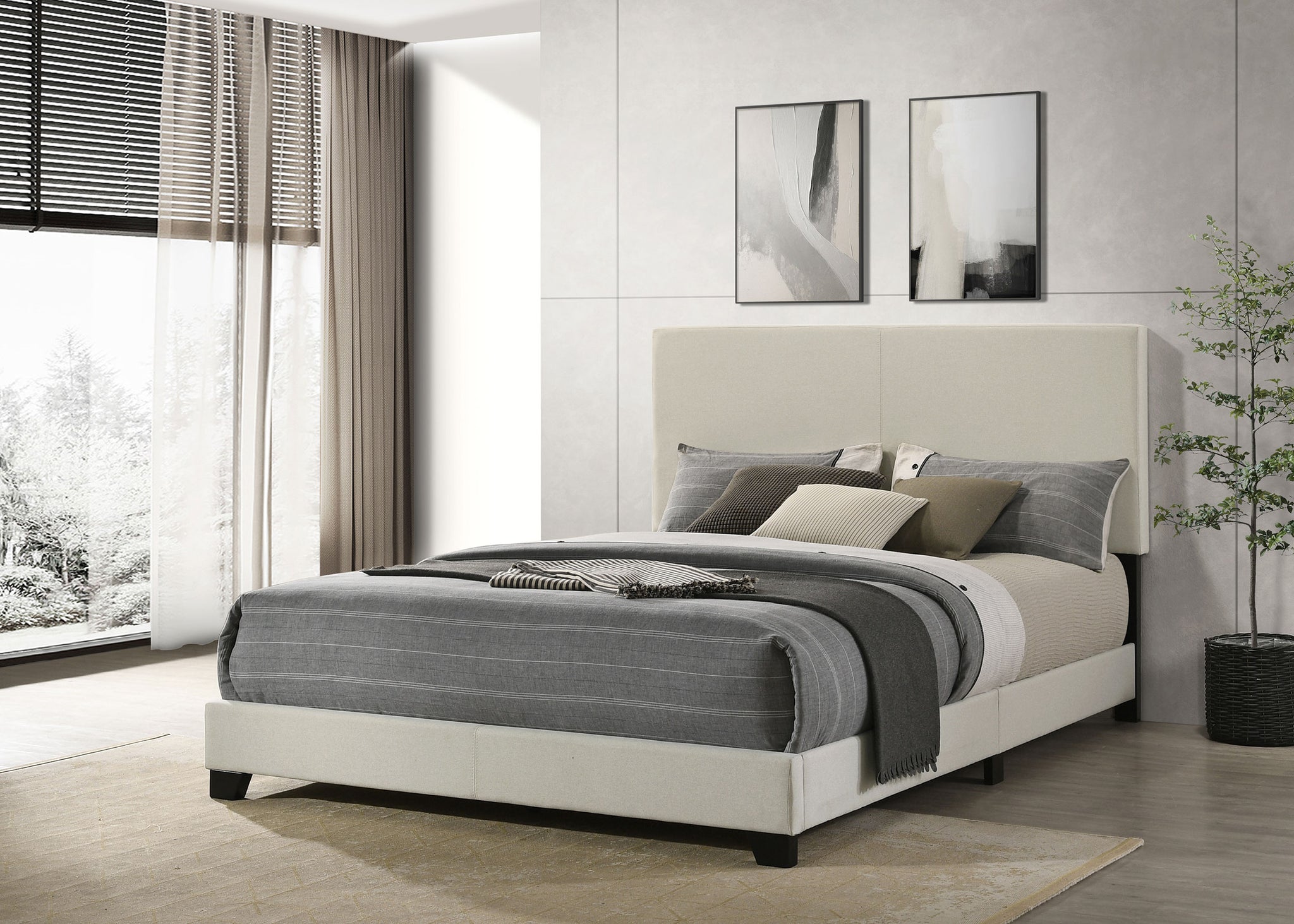 Transform your bedroom with this versatile panel bed, available in both faux leather and fabric upholstery options to suit any decor. Featuring a padded headboard and sleek design, it offers modern elegance and everyday comfort. Crafted with Asian hardwood, engineered wood, and foam, it ensures durability, while solid wood legs in a black finish add stability and a refined touch.