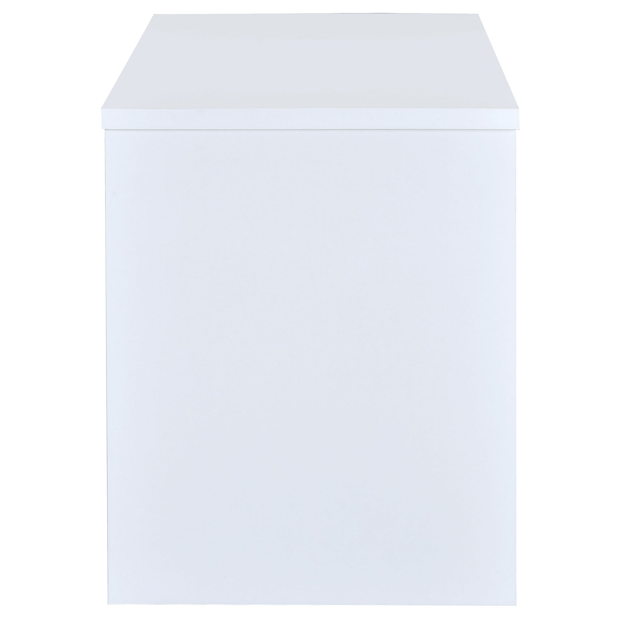 Maximize efficiency in any workspace with this sleek office desk. Designed with a reversible configuration, the attached storage can be placed on either side to suit your layout. A spacious desktop provides room for projects, while a storage drawer and a file cabinet keep essentials neatly organized. The file drawer accommodates both letter and legal-sized documents for versatile use. Built with engineered wood and laminate veneer, this desk blends durability with modern style for home or office settings._x005F_x000D_ Key Features: • Cappuccino finish office desk with sleek modern design and compact footprint • Reversible configuration allows file and drawer unit on either desk side • Includes one storage drawer and one file cabinet for practical organization • File drawer accommodates both letter and legal size document storage needs • Built with engineered wood and laminate veneer for durable everyday use • Silver finish hardware accents provide a clean contemporary design detail