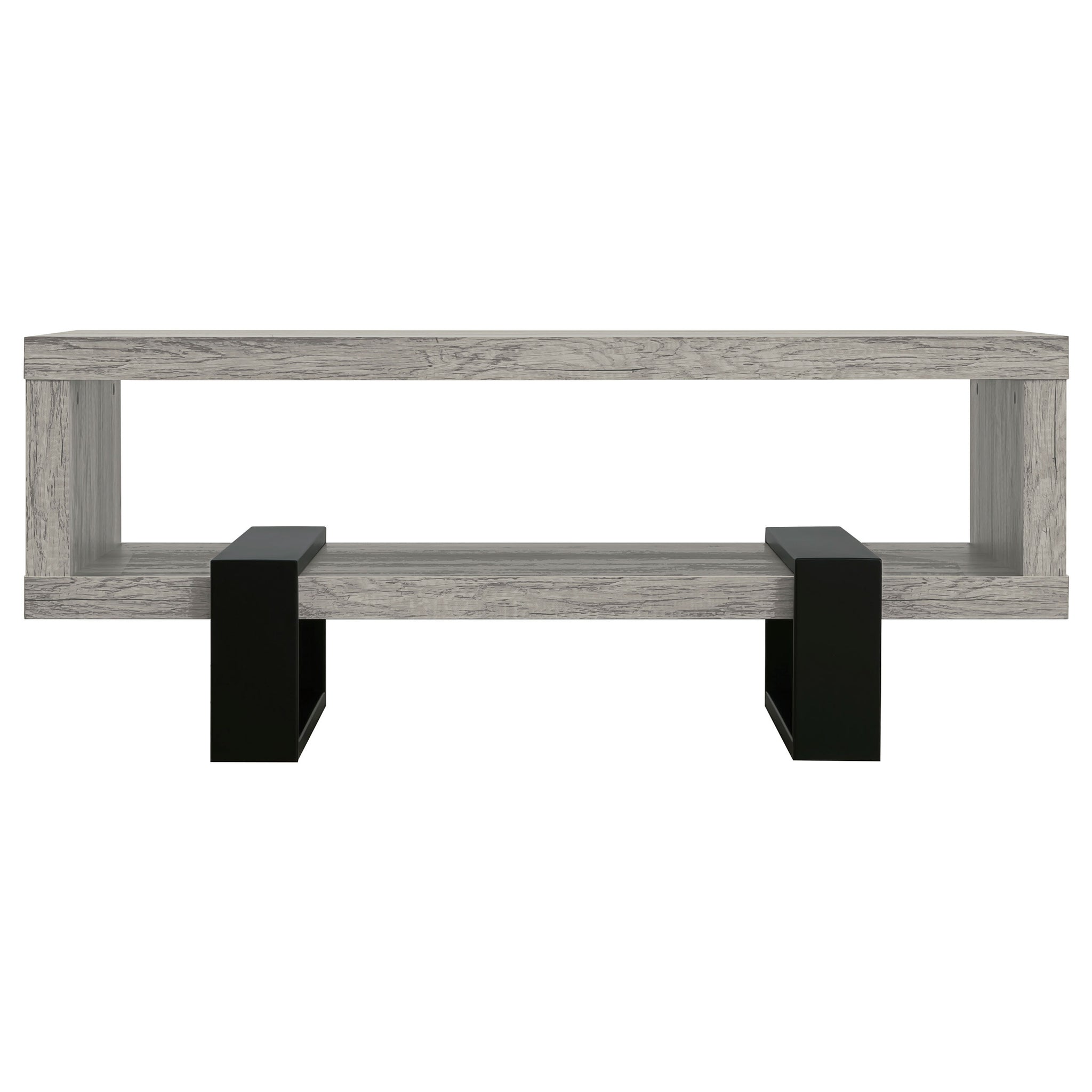 Experience a modern aesthetic with this rectangular coffee table that combines style and functionality. The grey driftwood finish highlights realistic wood grain, creating a rustic yet contemporary look. Crafted from durable engineered wood with a scratch-resistant laminate veneer, it offers long-lasting appeal. The bold black geometric legs provide sturdy support while adding industrial-inspired charm. Its versatile design and lower shelf make it a practical and stylish addition to any living room. Key Features: • Rectangular coffee table with sleek grey driftwood finish and realistic wood grain details • Engineered wood construction with eco-friendly, scratch-resistant laminate veneer for durability • Lower open shelf adds extra space for storage, organization, or decorative display pieces • Bold black geometric legs enhance its structure with a striking industrial-inspired aesthetic • Versatile finish seamlessly complements rustic, contemporary, or transitional interiors • Clean lines and sharp angles add modern charm to enhance your living room ambiance