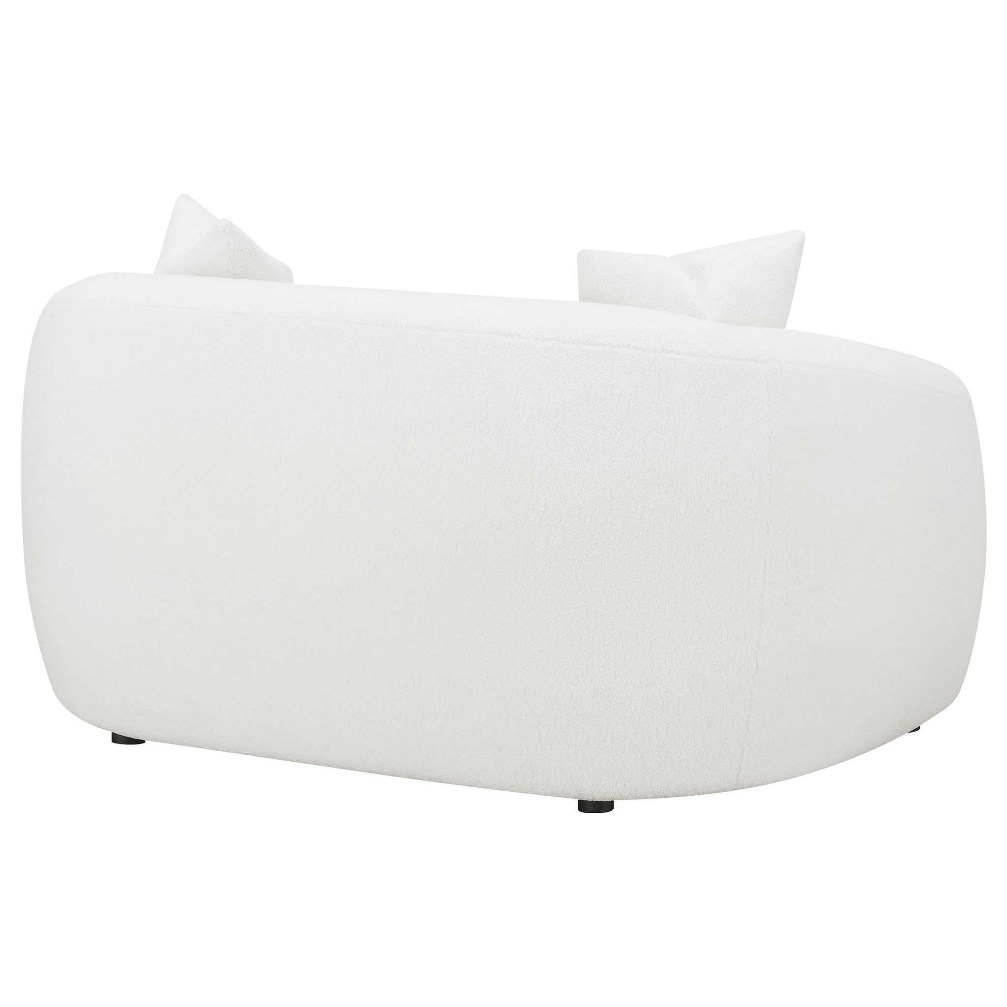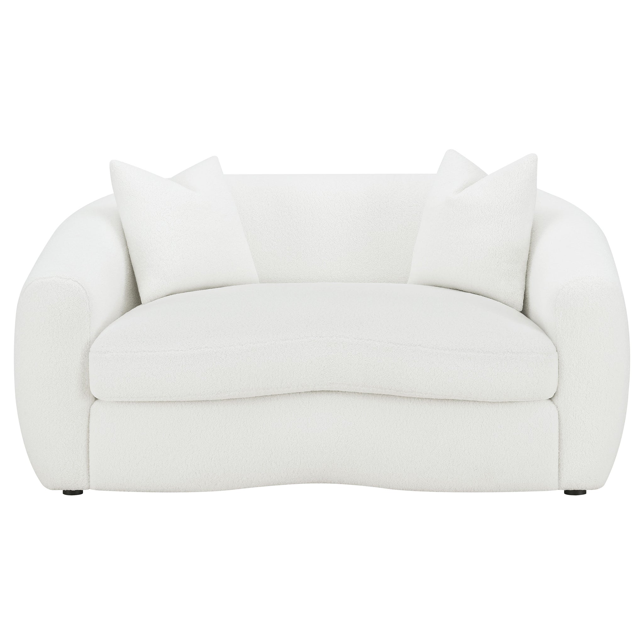 Transform your sophisticated modern living room with this vintage-like contemporary natural loveseat, featuring boucle upholstery that presents an inviting cloud-inspired resting place. Gracefully curved armrests, a single bench cushion, and a tailored backrest complete this retro-inspired look, accented by black legs.