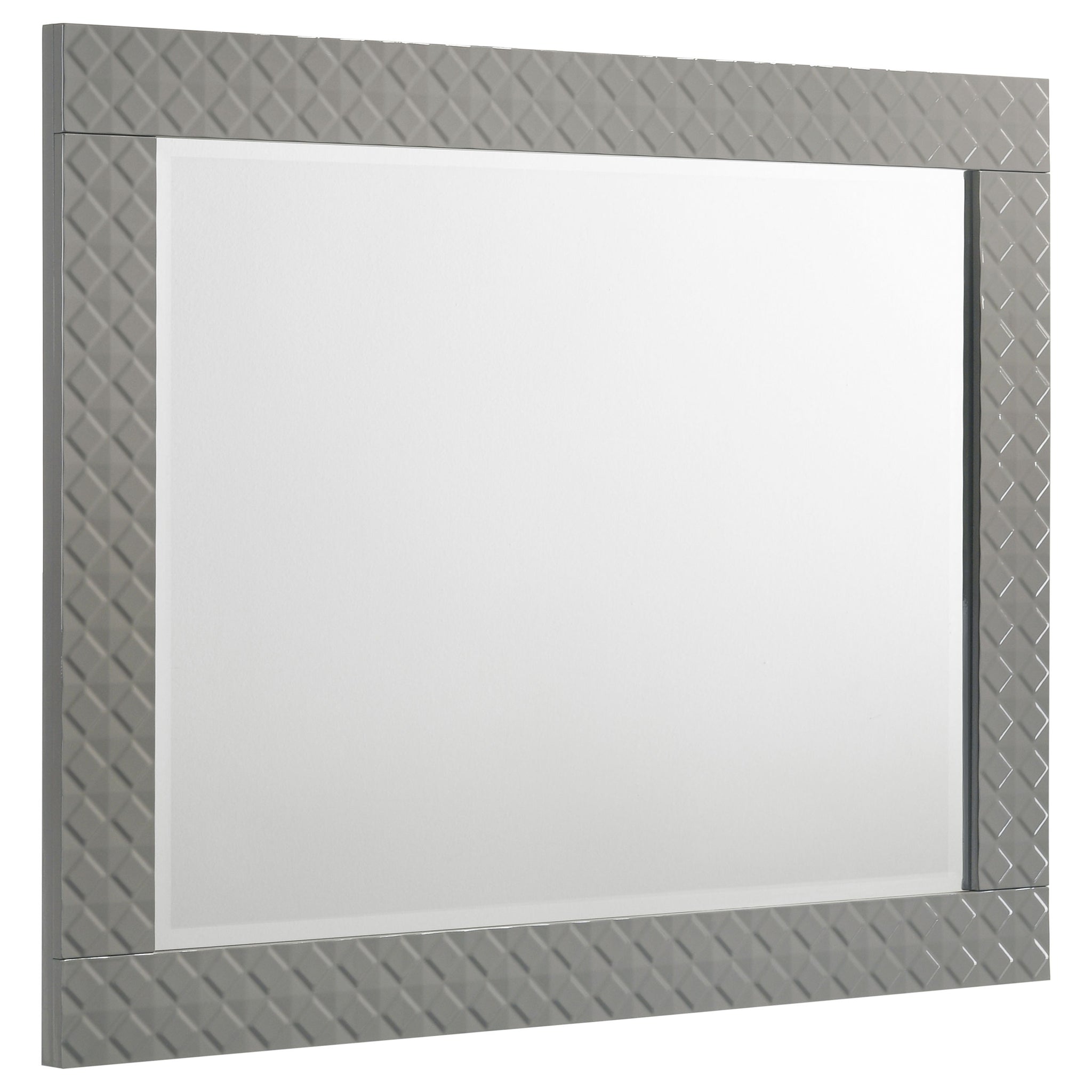 Create a cohesive and stylish look in your bedroom with this four-piece set, including a bed, nightstand, dresser, and mirror. The set features a high gloss finish and 3-dimensional diamond tile emboss, reflecting a contemporary Italian style. Each piece is crafted with quality materials and attention to detail, offering both beauty and functionality. The bed includes a touch LED light in the headboard, while the dresser and nightstand provide ample storage with felt-lined top drawers. This bedroom set is perfect for those seeking a modern and elegant aesthetic.