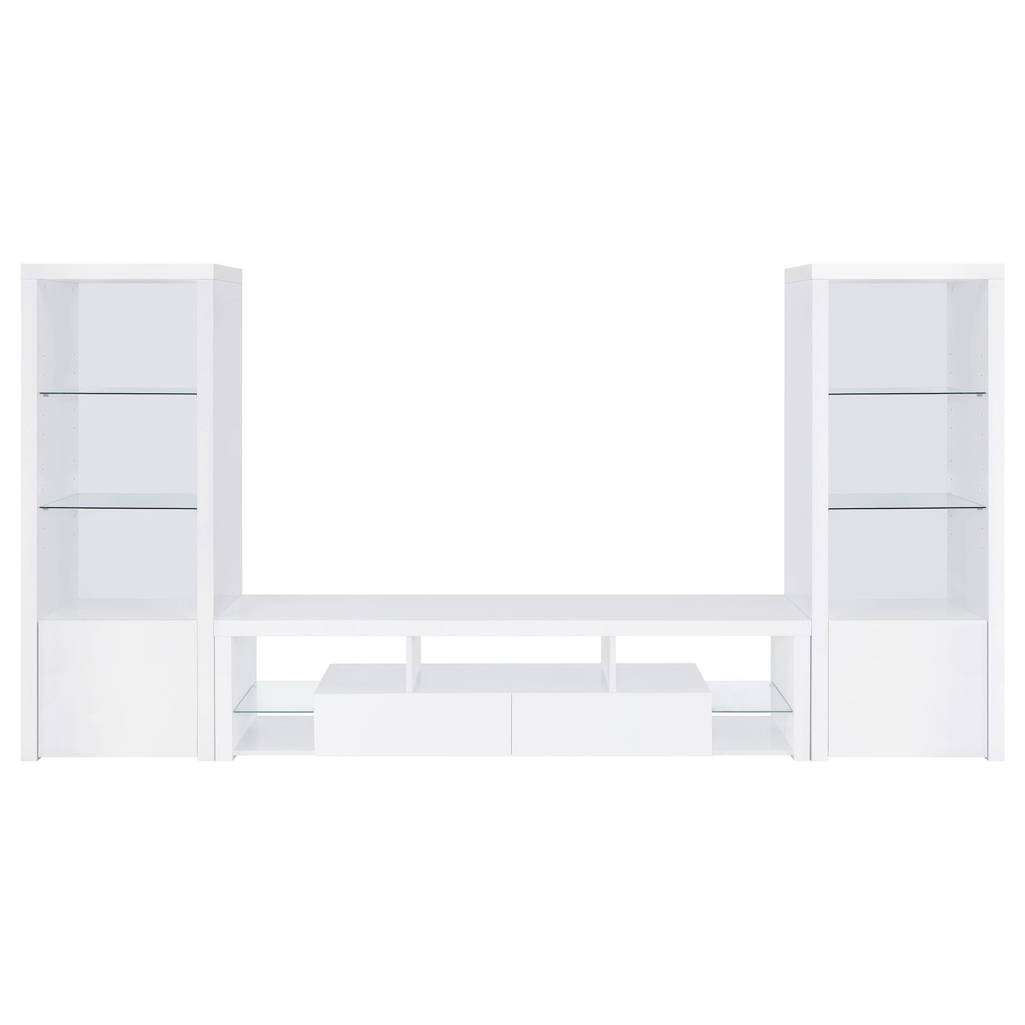 Extend a media console or add easy display space in a den or bedroom with this contemporary tower. Designed to accompany the matching media console, the tower adds a lower cabinet with shelving inside, and a pair of glass display shelves. It’s the perfect solution when both hidden and accessible storage are desired. A crisp white finish adds to the modern look and complements virtually any space. Melamine paper surfaces are designed for durability, perfect for everything from games and media to charming decor. Key Features: • Contemporary tower adds lower cabinet and glass display shelves • Crisp white finish complements any space • Melamine paper surfaces for durability • Perfect for hidden and accessible storage • Ideal for games, media, and decor