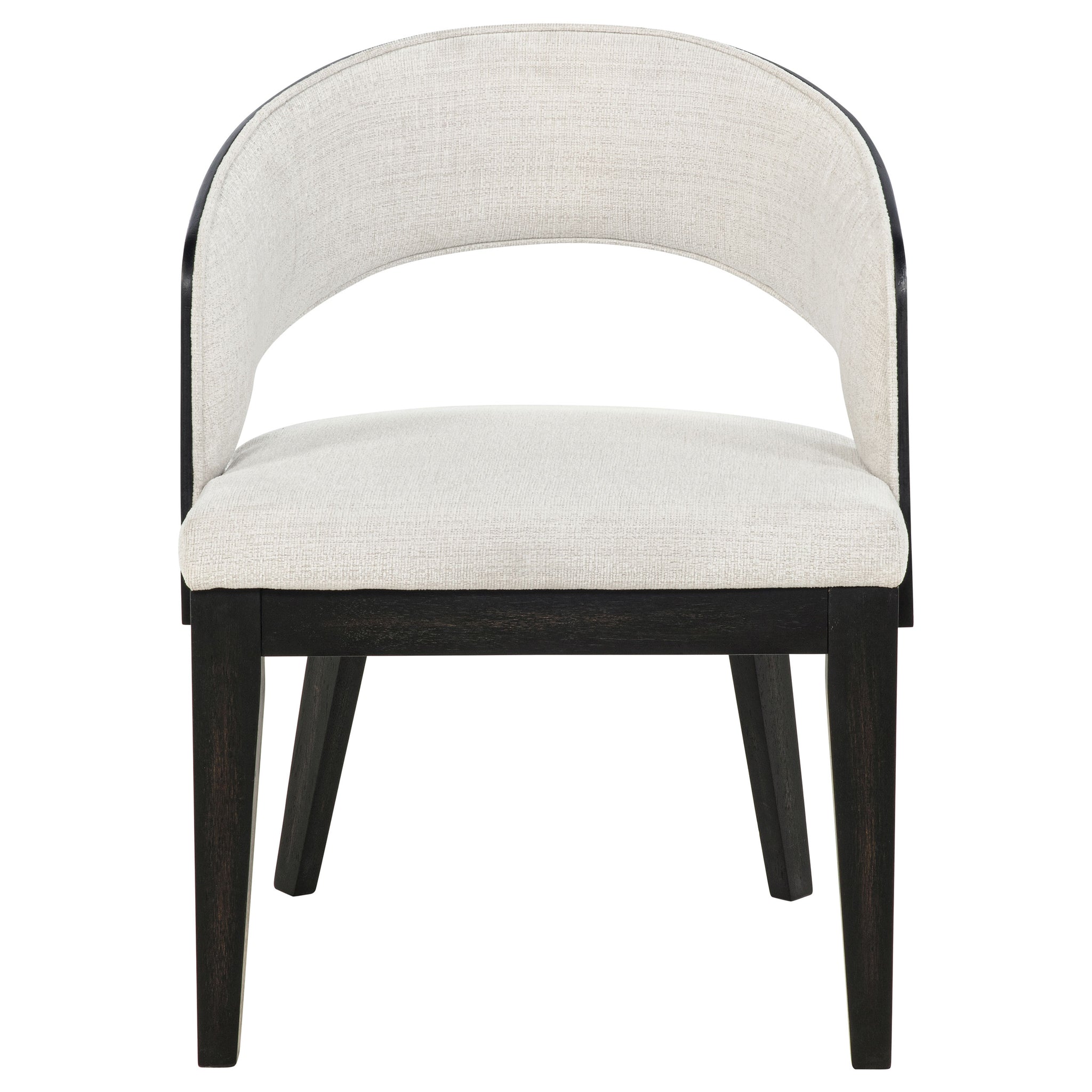 Gather in grounded elegance with this dining set, where sculptural form and graceful texture meet. A bold round pedestal table anchors the space in a burnished black finish, its open base and soft curves inviting conversation and connection. Surrounding it, barrel-back arm chairs cradle each guest in cream fabric and cushioned ease. From candlelit evenings to morning rituals, this set is a quiet celebration of balance, beauty, and belonging. Key Features: • Dining set features a burnished black pedestal table with curved edges and open base • Cream upholstered arm chairs offer barrel-back support and sculptural comfort • Soft flared frames and cushioned seats create an inviting, elevated dining experience • Round table silhouette encourages connection in intimate and open spaces alike • Crafted from rubberwood, ash veneer, engineered wood, and textured fabric • Modern organic styling blends strength, flow, and warmth in a unified setting