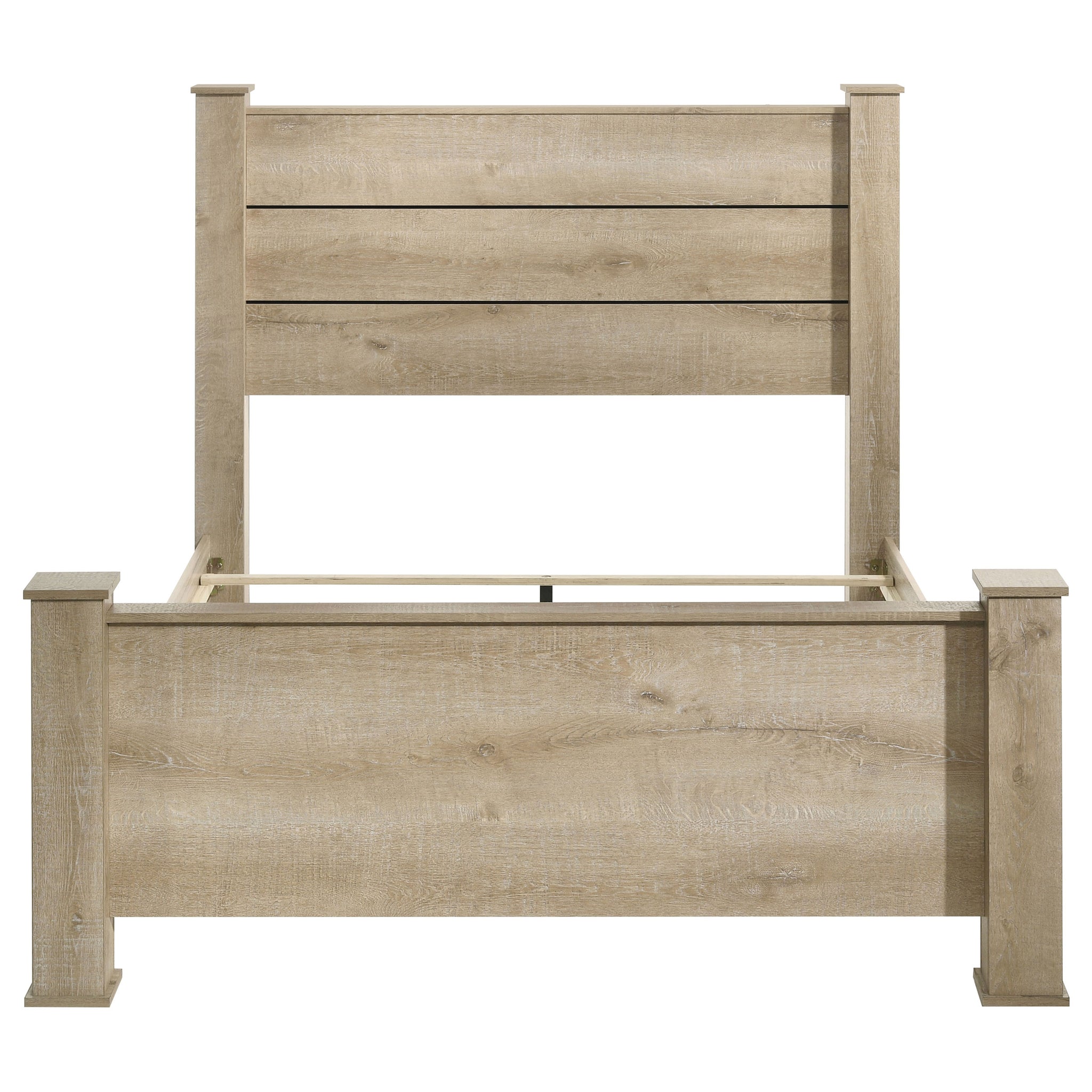 This transitional bed frame combines rustic charm and modern design with its horizontal planked headboard and clean silhouette. Finished in weathered oak, it is made from engineered wood with a scratch-resistant, eco-friendly veneer for enhanced durability. Sturdy column-style legs provide stability and timeless appeal. The frame’s warm tones and strong construction create a cozy focal point in your bedroom, blending seamlessly with rustic or transitional decor styles.