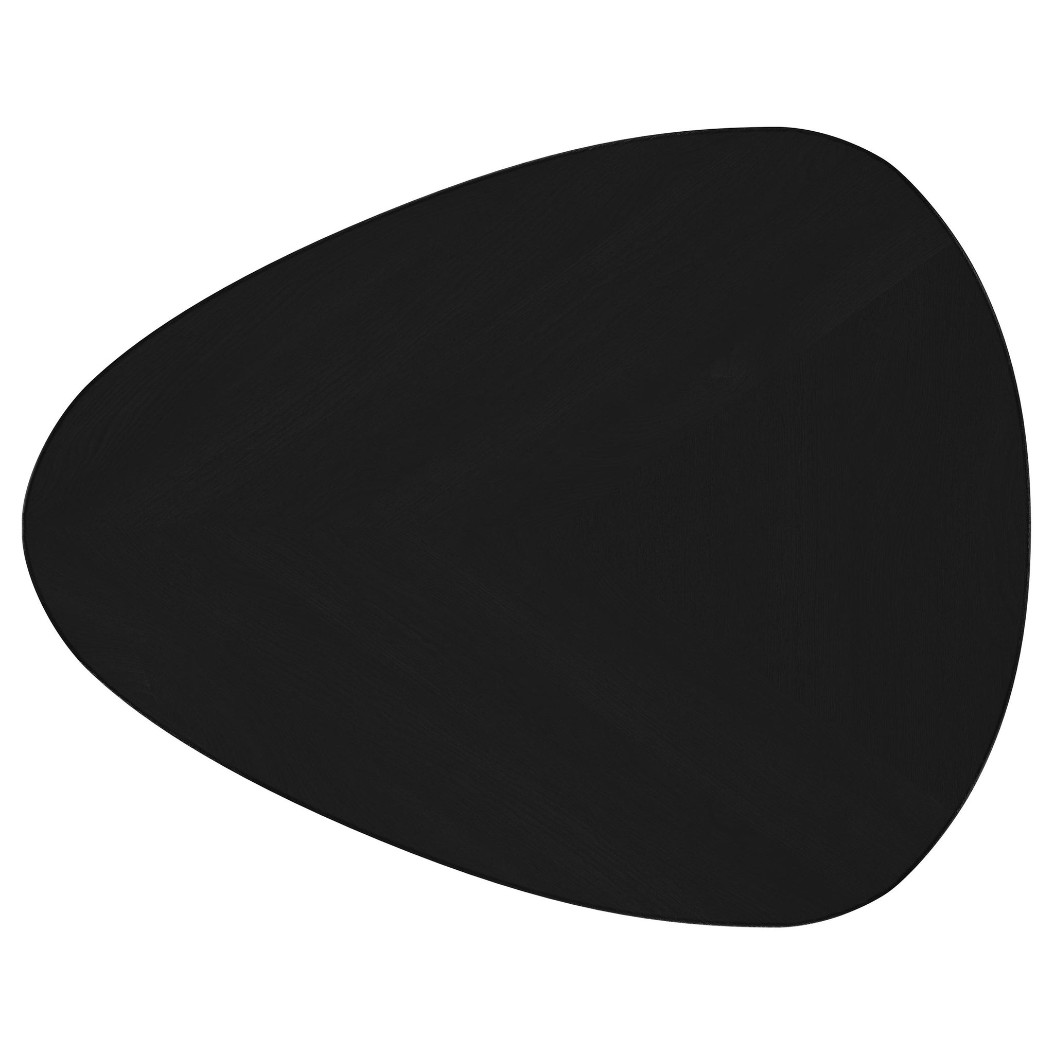 Elevate your living room with this sleek coffee table set, blending modern style with timeless craftsmanship. Handcrafted from solid mango wood, each table boasts a smooth black finish that emphasizes its triangular tabletop design with softly rounded corners. The splayed iron legs feature a black powder-coated finish, offering sturdy support with an airy aesthetic. Perfect for creating a cohesive and contemporary centerpiece, this occasional set combines durability and elegance effortlessly.