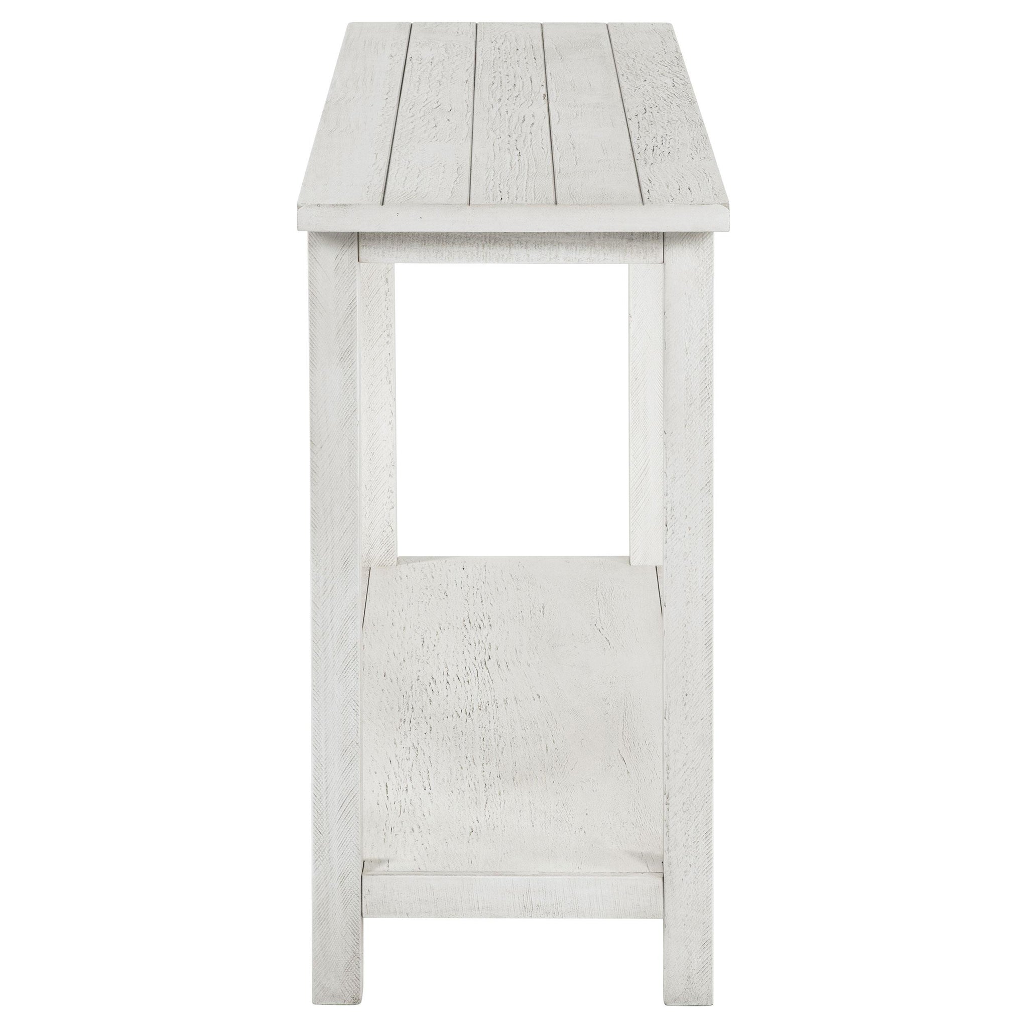 Crafted to complement both entryways and living rooms, this console table showcases a rustic aesthetic and versatile appeal. Fashioned from pine wood and reinforced with engineered wood, its open lower shelf provides ample space for baskets or decorative accents. The slim profile allows easy placement behind a sofa or along a hallway, making it a stylish choice for farmhouse or casual interiors. Enhance your space while keeping essentials close at hand. Key Features: • Introduce rustic charm with this streamlined console table in any setting • Distressed brown finish creates a warm, casually elegant focal point • Rectangular top suits narrow spaces like hallways or under windows • Lower shelf offers extra room for baskets, décor, or daily essentials • Crafted from pine wood and engineered wood for long-term durability • Works beautifully as a sofa table behind seating for a cohesive overall style