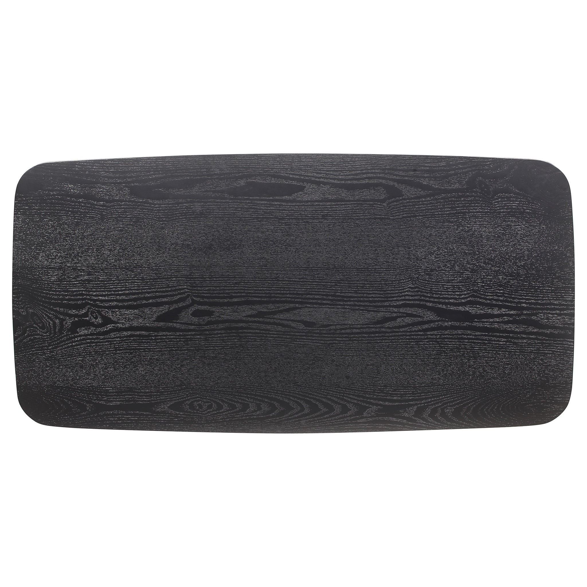 Amid the modern milieu, a three-piece coffee occasional table set stands as a beacon of mid-century inspiration. The coffee table, along with its twin end tables, boasts a black finish so deep it seems to hold secrets within its ash veneer wood grain. Elegant angles converge in the 45-degree chamfered edge profile, softening the silhouette while maintaining a crisp, architectural line. This ensemble, crafted from a harmonious blend of solid and engineered wood, is a tribute to both form and function, a striking centerpiece to any gathering space where stories are shared over cups of coffee.