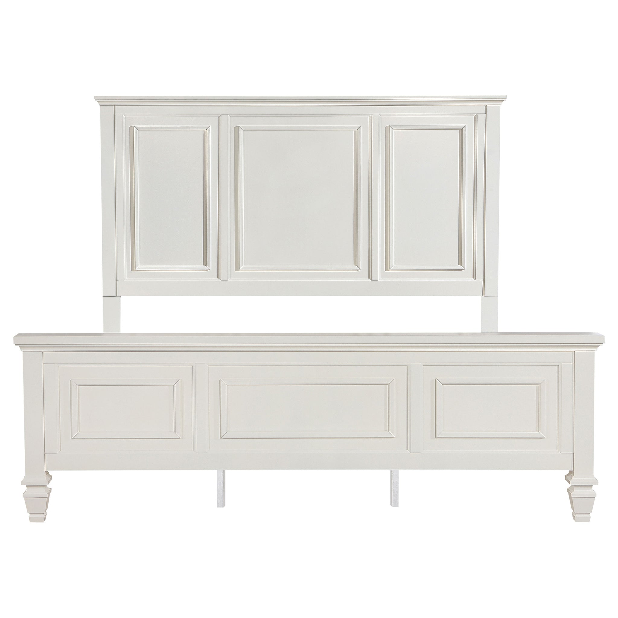 Bring a touch of classic distinction to your bedroom with this elegantly crafted coastal style panel bed. The headboard and footboard feature detailed carved panels, adding depth and sophistication to its design. Finished in a clean neutral color, the bed effortlessly complements a variety of decor styles. Built from a combination of solid hardwood and engineered wood, this bed offers lasting durability and timeless style. Designed to be used with a foundation, this bed is perfect for traditional, transitional, or contemporary spaces, becoming a refined centerpiece for any bedroom.