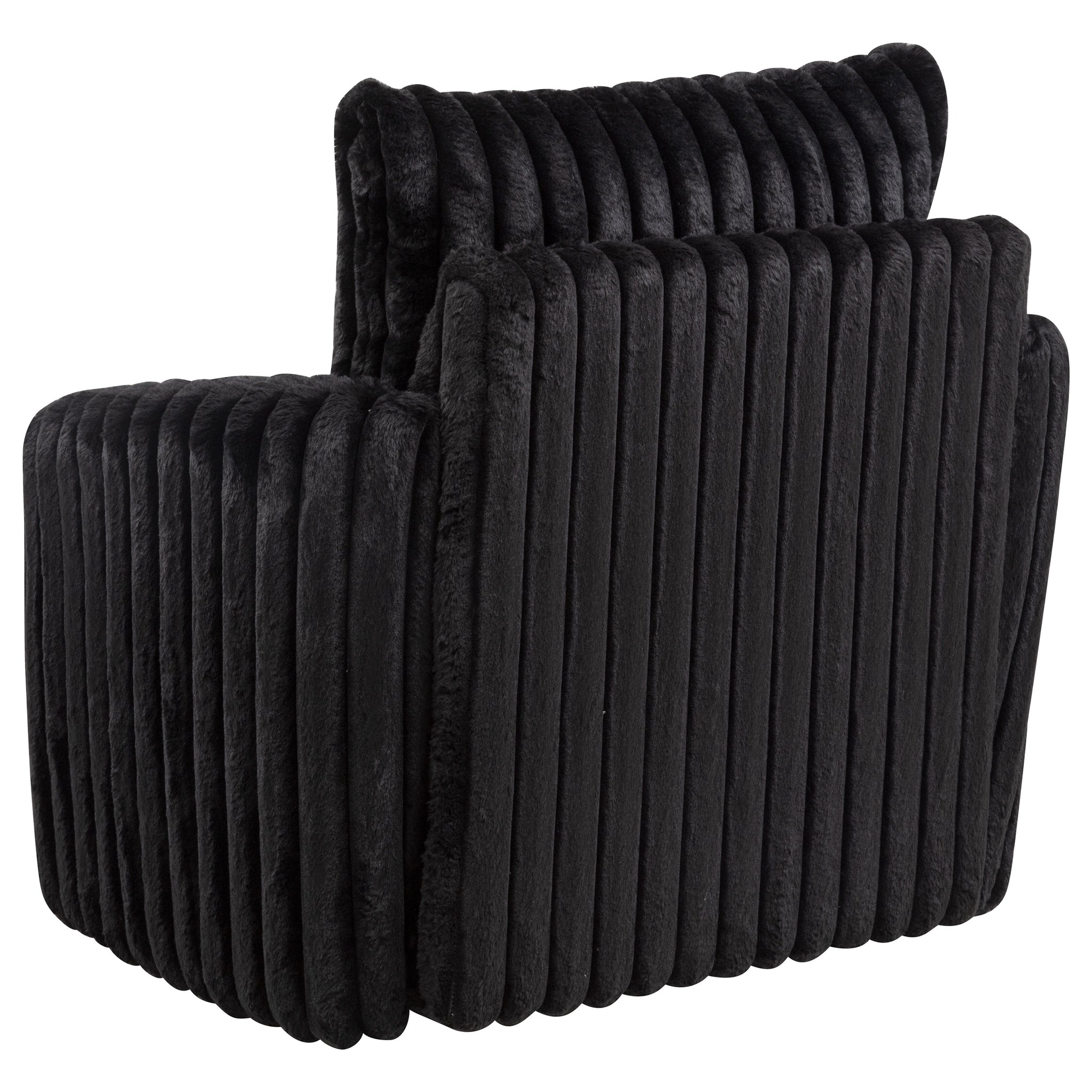 Contoured for comfort and wrapped in plush texture, this swivel chair invites relaxed movement with a soft, sculptural silhouette. Deep channel tufting traces every curve, from the wide seat to the tailored backrest and arms. Fully upholstered in ribbed corduroy and built with layered foam, this lounge chair rotates 360 degrees for flexible conversation. Ideal for modern living rooms, reading corners, or cozy bedrooms. Key Features: • Swivel chair in ivory corduroy features deep channel tufting and soft sculptural shaping • Full 360-degree swivel base allows flexible movement in open or compact spaces • Thick foam cushions provide a plush seating experience with lasting support • Fully upholstered arms and back offer a continuous wrap of ribbed corded texture • Framed in engineered wood for durability and built-in strength beneath soft contours • Modern swivel lounge chair suits bedrooms, living rooms, or cozy reading spaces