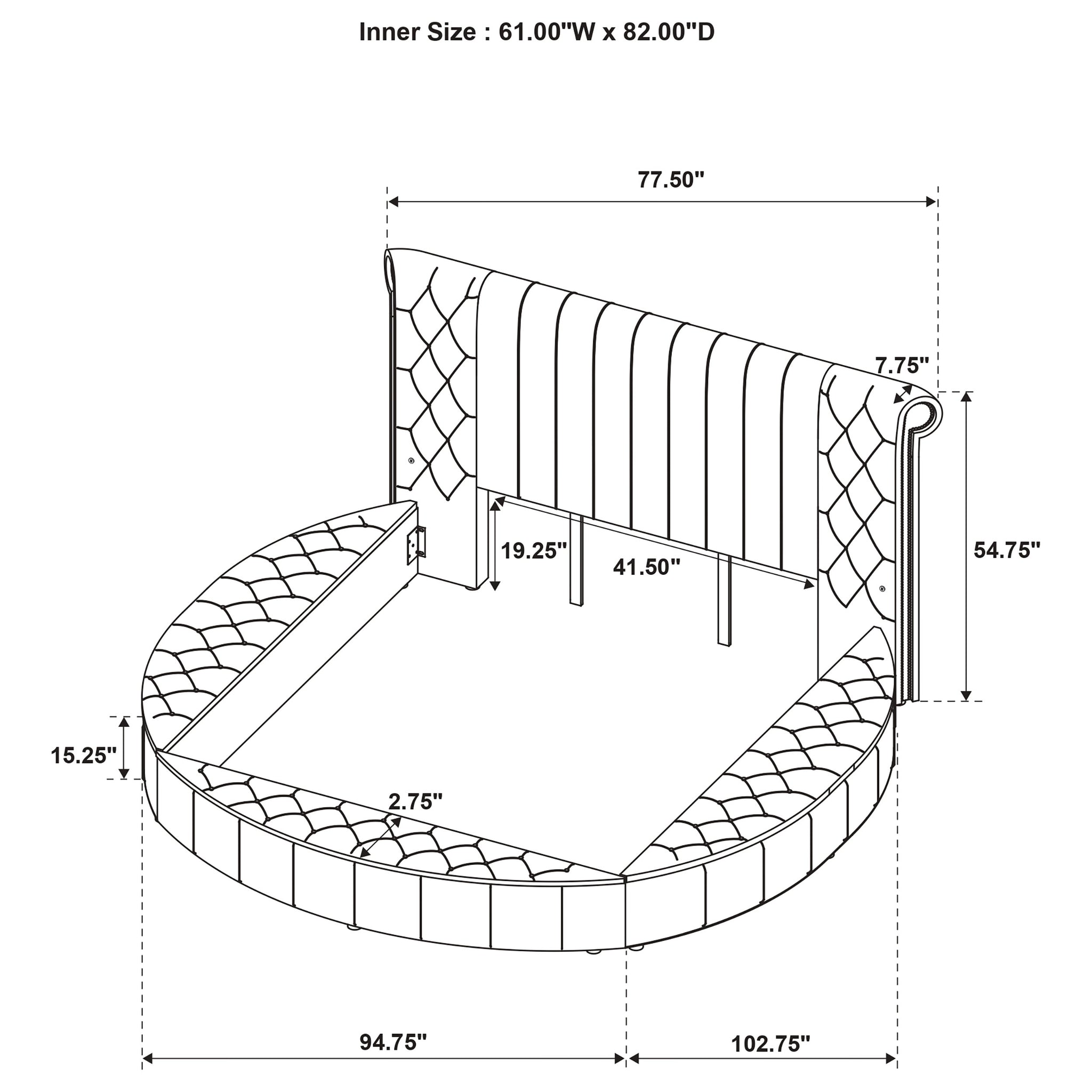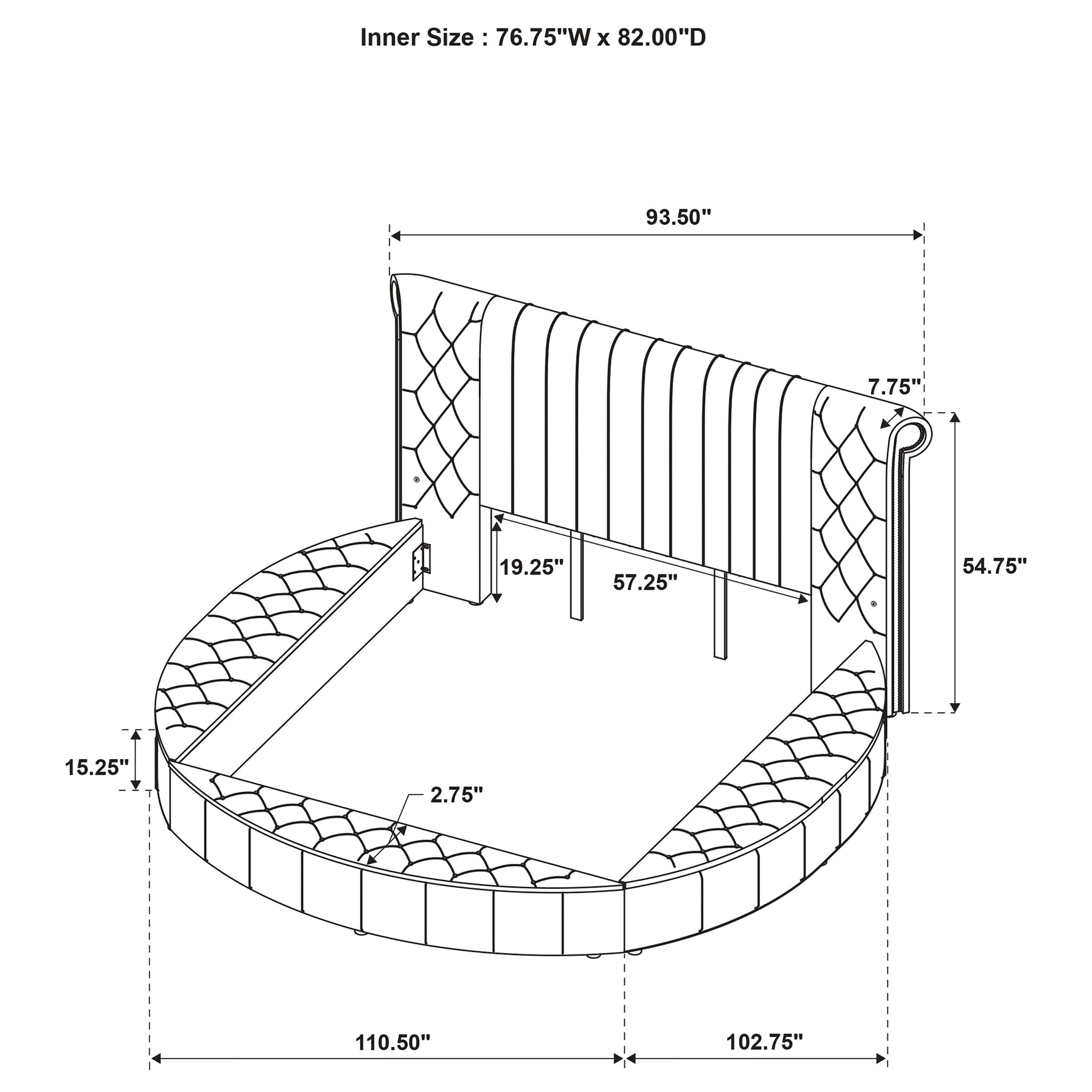 Make a bold statement in your bedroom with this luxurious round-bench bed, designed to elevate your space into a glamorous retreat. The elegant ivory bouclé fabric features exquisite channeled tufting, adorned with sparkling acrylic buttons that shimmer with every glance. Adding to the functionality, USB charging ports are conveniently located on both sides of the headboard, allowing you to stay connected without leaving the comfort of your bed. The design brings a unique blend of modern luxury and timeless elegance, perfect for creating a dramatic yet cozy atmosphere.