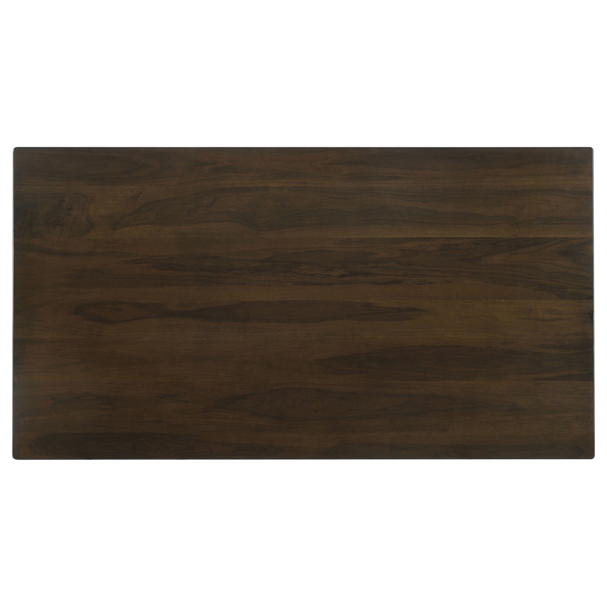 Perfect for your mid-century modern dining space, this beautiful and spacious dining table brings a retro expression. A spacious rectangular table top with a bullnose edge and a fluted apron beneath offers plenty of room for six family members and guests. Beneath the table are vintage-like tapered legs that flare outward in a bold, dramatic way. Throughout the entire table, a rich, dark walnut finish elevates it into an elegant and contemporary aesthetic. Place this wonderfully sleek and stylish dining table in both casual and formal dining rooms. Key Features: • Casual dining can look elegant and still be functional for busy homes • A spacious rectangular table top seats up to six comfortably • A dark walnut finish offers a rich color palette for refined tastes • The fluted apron brings out a hint of texture • Boldly flared tapered legs lend a vintage expression
