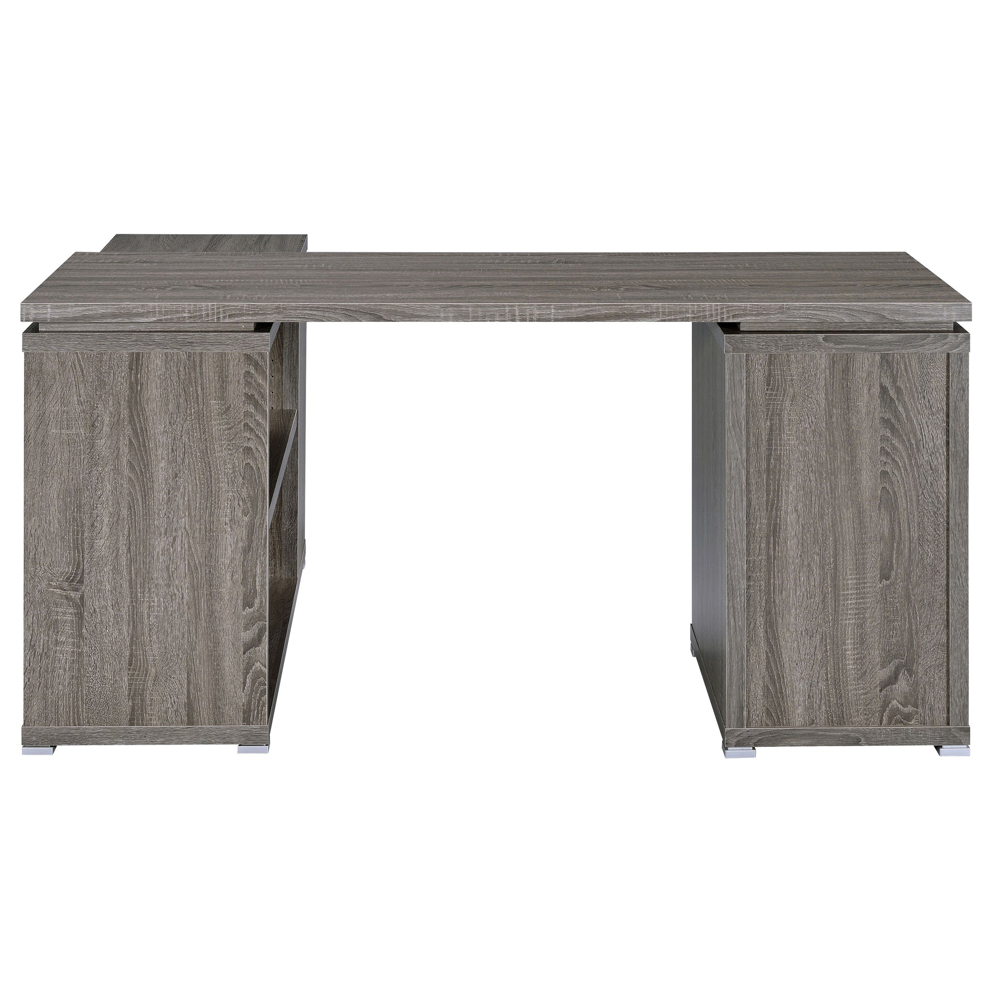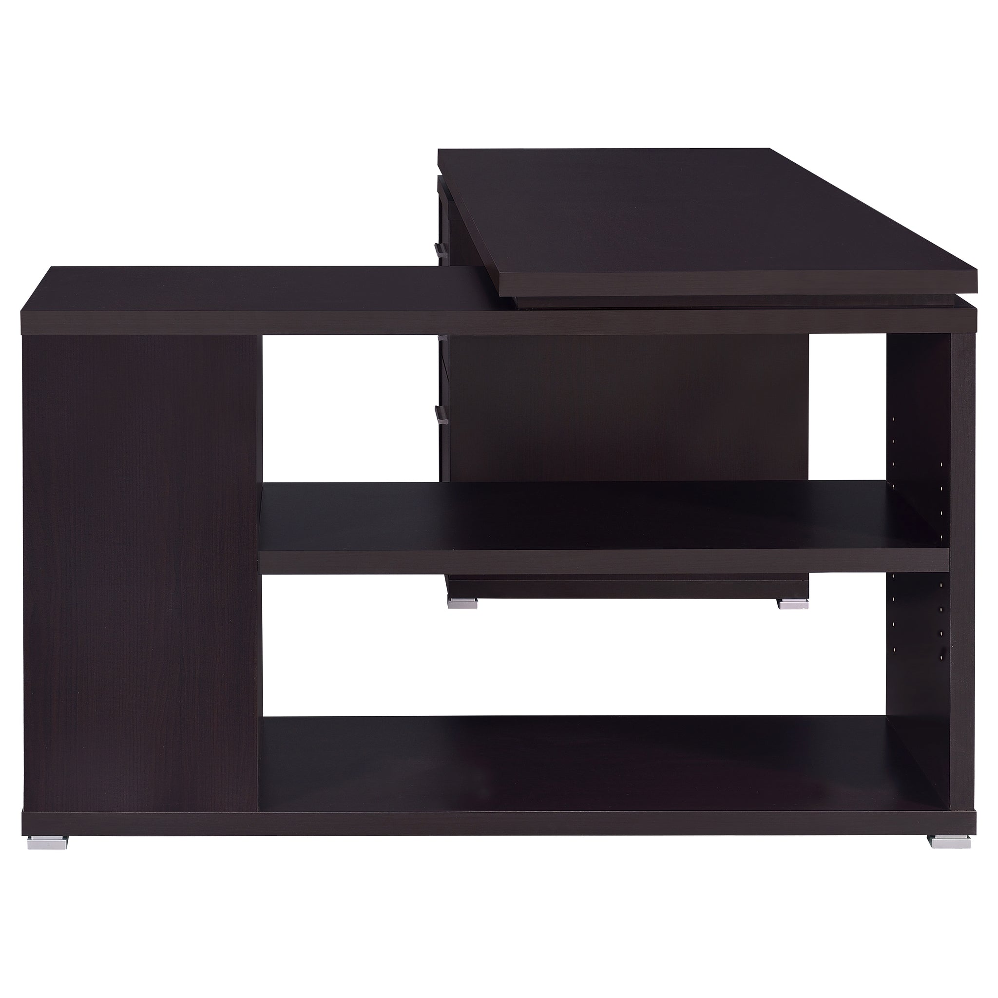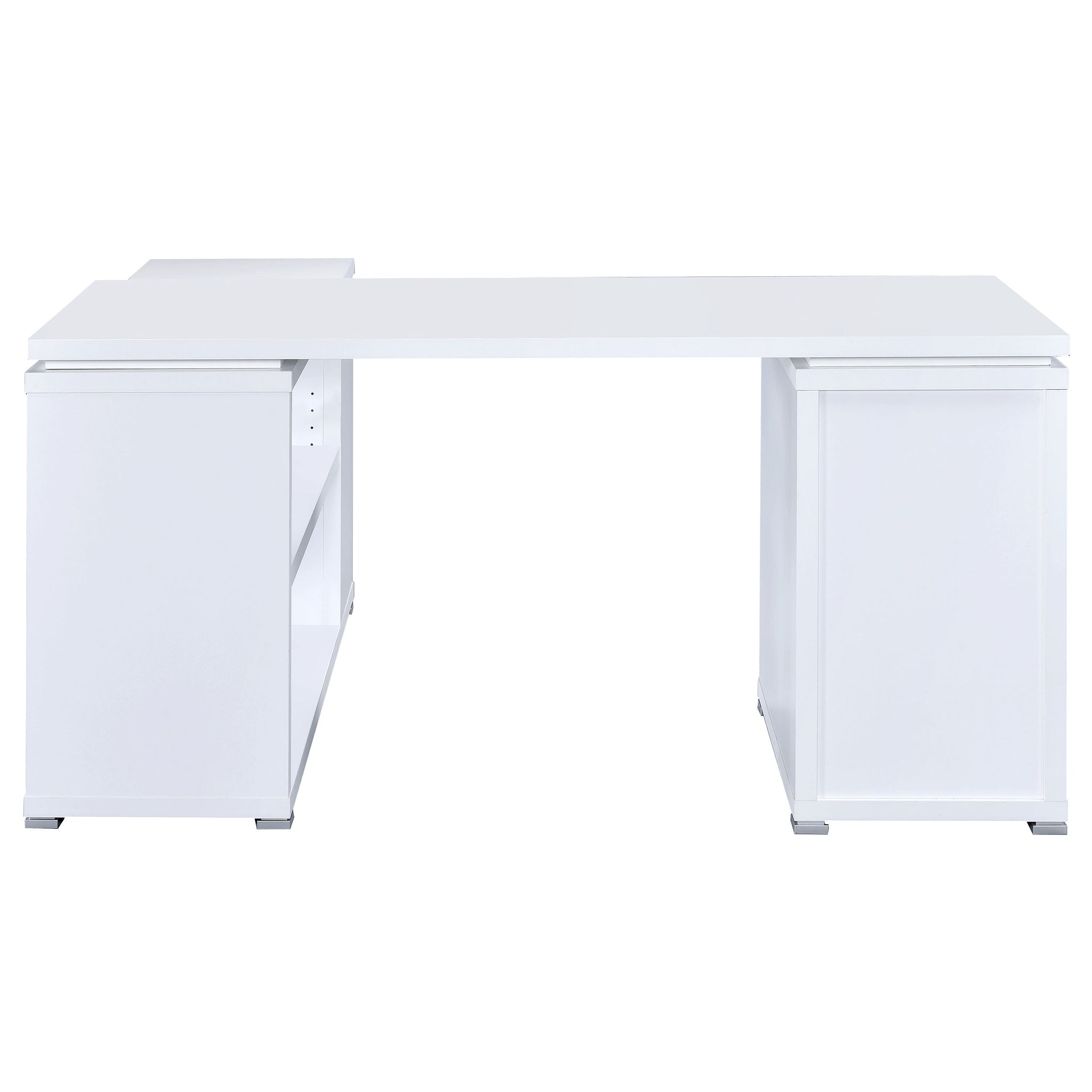 Bring organization and productivity into your workspace with this versatile L-shape office desk. Designed with an articulating return, it offers generous surface space for computers, books, and projects while keeping everything within reach. Two drawers and a built-in file cabinet provide secure storage for documents and supplies, while open shelving adds flexible display options. Crafted with engineered wood and laminate veneer, this sturdy desk blends durability with functional style for the modern office. Key Features: • L-shape office desk with articulating return in white finish • Two drawers and one file cabinet for efficient office storage • File cabinet holds both legal size and letter size documents • Open shelving offers easy access and versatile display options • Reversible configuration adapts to any office layout with ease • Engineered wood with laminate veneer ensures lasting durability