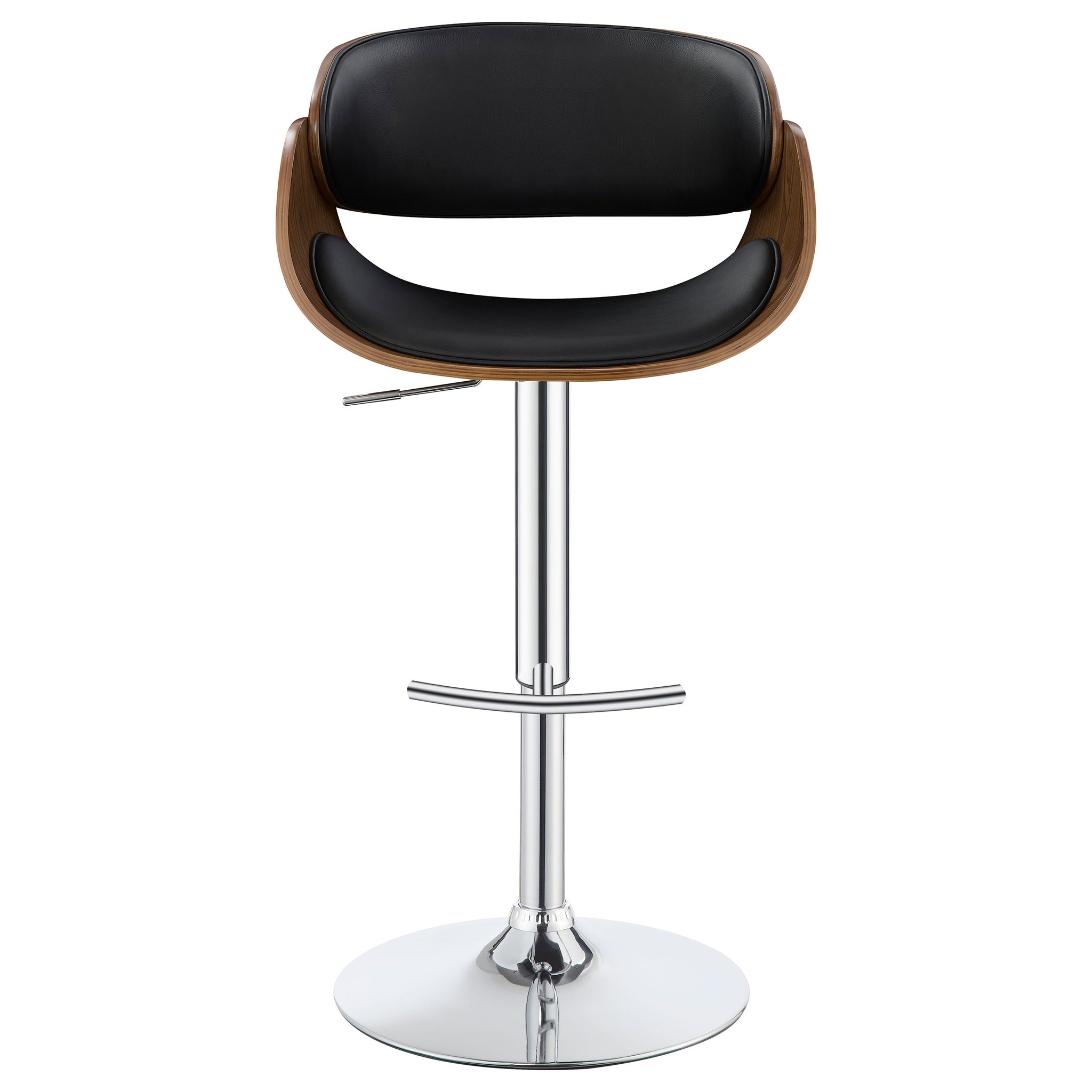 Perfect for a home bar or kitchen island, this barstool is conveniently height adjustable to fit with any space. Beautifully designed, it features a simple, sleek support that flares elegantly into a sturdy, round base. Its seat boasts a cool, curved silhouette with a pleasingly modern feel. The shiny finish of its base creates an appealing contrast to the subdued shades of its seat. With comfortable back and foot rests, it offers maximum support and durability. Key Features: • Height adjustable to fit any space • Sleek support flares elegantly into a sturdy, round base • Cool, curved seat with modern feel • Shiny base creates contrast to subdued seat • Comfortable back and foot rests for maximum support and durability