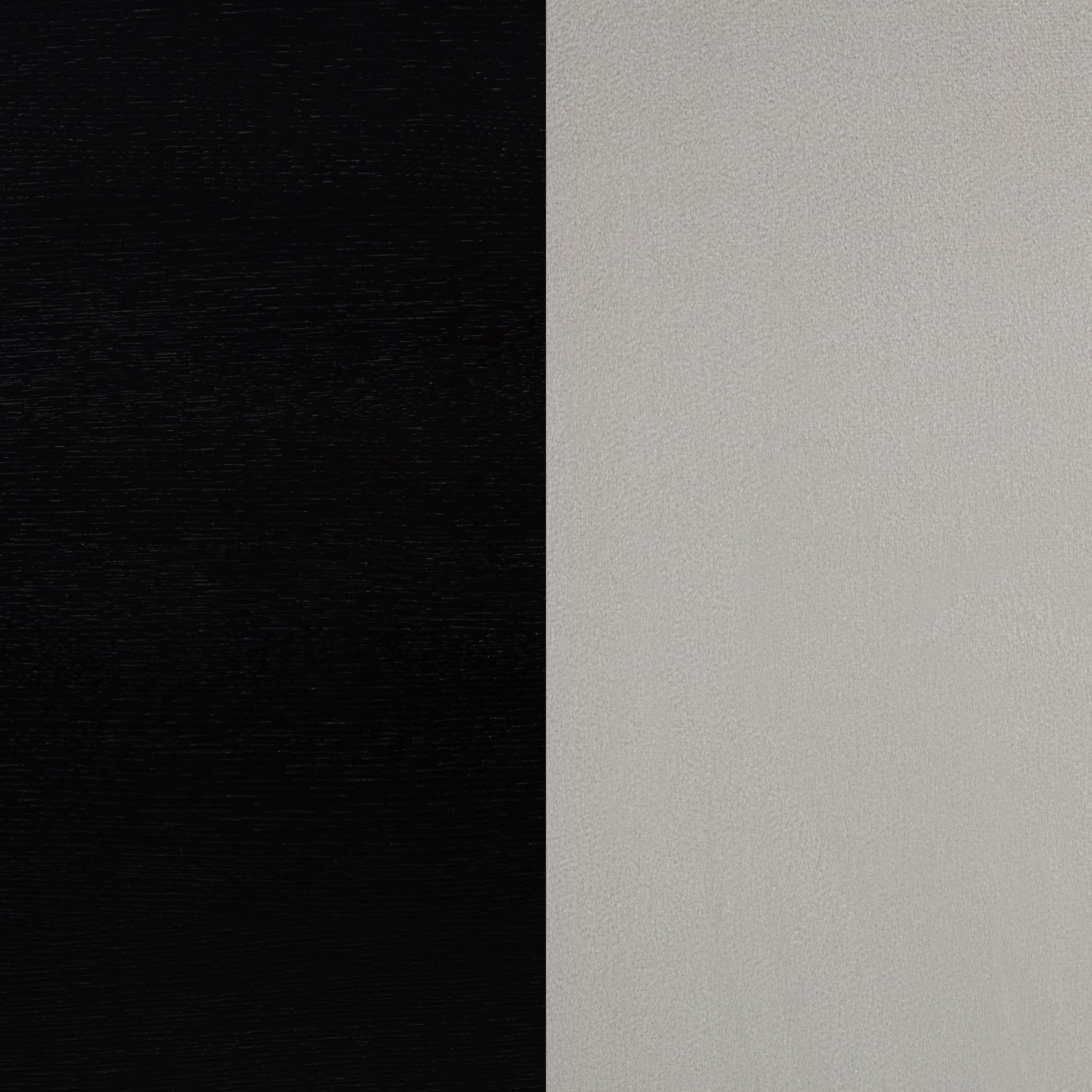 From the Stanton Collection, this wood and fabric side chair has a cheerfully padded seat and backrest. The flared back cuts a dashing silhouette that's also good for relaxing. Featuring grey fabric upholstery and leg finish in black, it's a classic complement to the contemporary dining table from the same collection. This side chair is comfortable enough for lingering over after-dinner conversation or coffee. Sturdy construction and slightly angled legs make it stand up to everyday use. Key Features: • Velvet dining chair features flared high backrest for sleek modern profile and ergonomic support • Grey polyester upholstery offers soft texture and versatile tone for updated dining rooms • Padded seat and backrest provide comfort for extended meals or casual gatherings • Black wood legs contrast elegantly with the soft grey velvet for a refined finish • Subtle stitching along the seat back adds tailored visual detail • Constructed from solid wood, foam, and fabric for durability and comfort