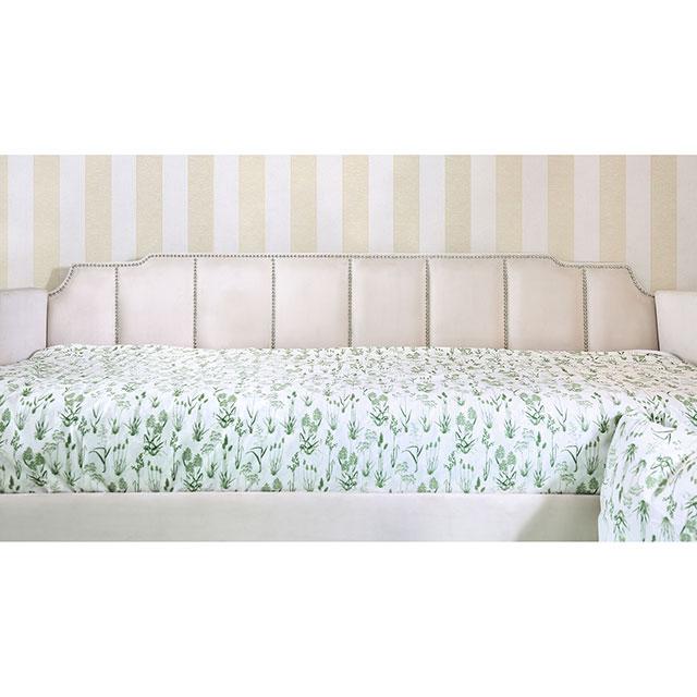 The contemporary silhouette is visually interesting with its step-like design, providing a tiered look sure to appeal to you and guests alike. Upholstered in comfy flannelette for a more luxurious feel, this piece is sure to surpass all expectations in style, convenience and comfort.