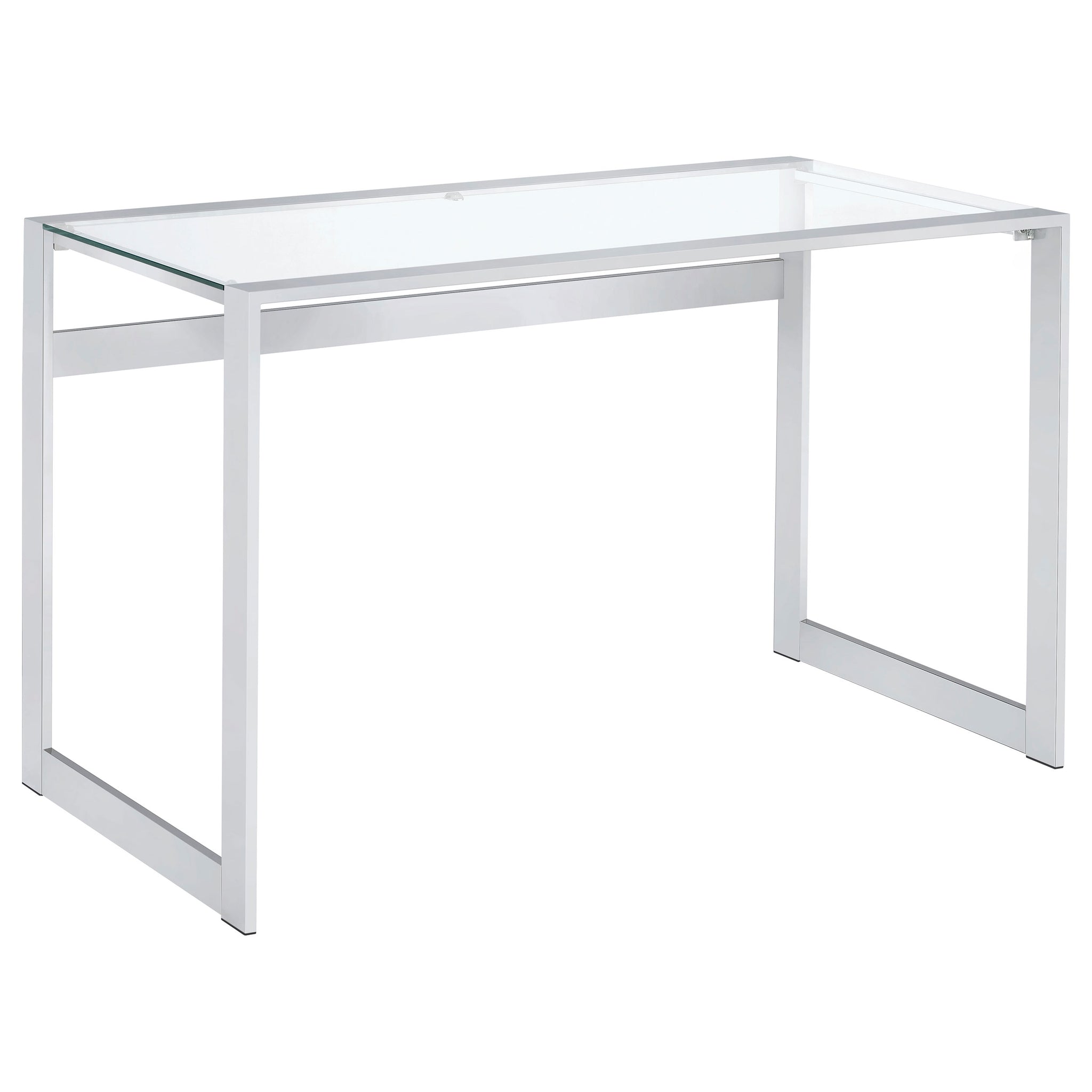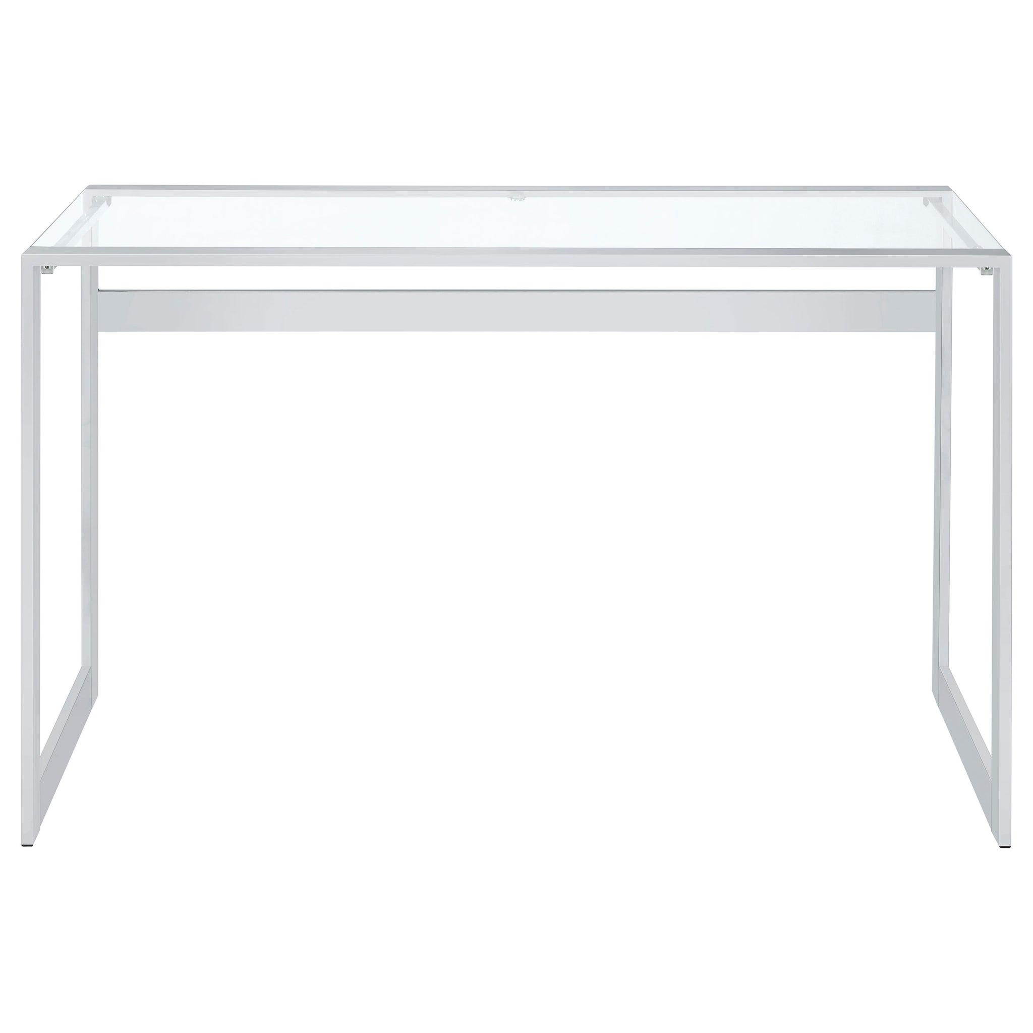 Achieve a sleek and modern workspace with this glass writing desk, perfect for home or commercial office settings. The spacious clear tempered glass top offers a minimalist aesthetic while providing ample room for work, design, or brainstorming sessions. Supported by a sturdy chrome metal frame, this desk ensures stability and durability while enhancing contemporary interiors. Whether used for professional tasks or creative projects, this stylish desk brings both form and function to any workspace. Key Features: • Modern writing desk with a sleek chrome-finished frame • Clear tempered glass tabletop creates a spacious, airy look • Durable metal and glass construction ensures long-lasting stability • Minimalist design complements contemporary, home, or commercial offices • Generous workspace ideal for writing, designing, or working on a laptop • Perfect addition to modern workspaces, studios, or study areas