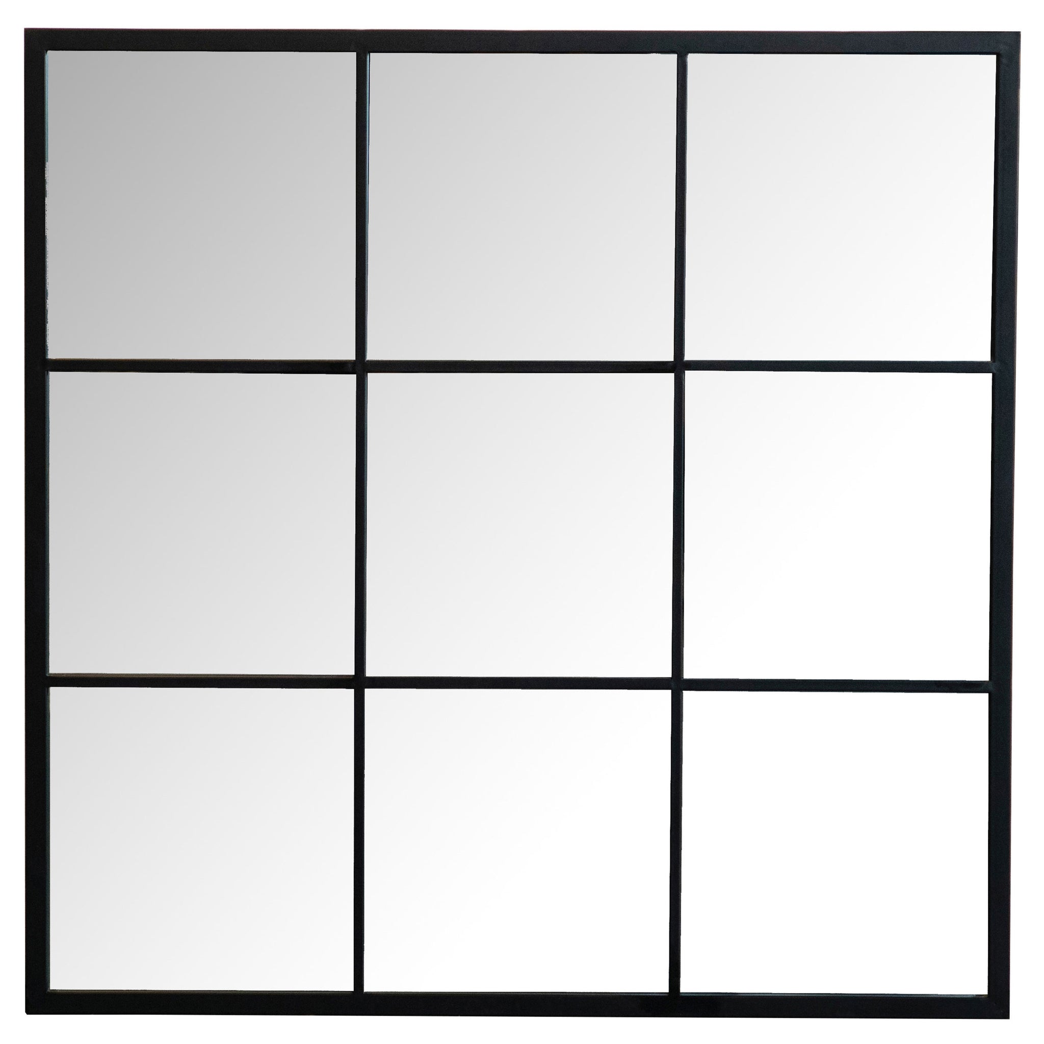 This square mirror features a classic windowpane layout, bringing timeless symmetry and charm to any interior. Divided into nine mirrored panels by slender black trim, it creates a French-inspired grid effect that adds depth and balance to walls. The bold black frame complements a variety of design styles, from traditional to transitional. Ideal for bathrooms, foyers, or living rooms, this wall mirror helps brighten tight spaces and adds architectural structure. Key Features: • Square wall mirror styled with a classic nine-panel windowpane layout • Black-finished metal frame adds contrast and timeless visual appeal • French-inspired design suits traditional, transitional, and modern interiors • Grid pattern enhances symmetry while opening up compact spaces • Ideal above vanities, consoles, or in hallways and entry foyers • Mounts flush to the wall to provide architectural depth and brightness