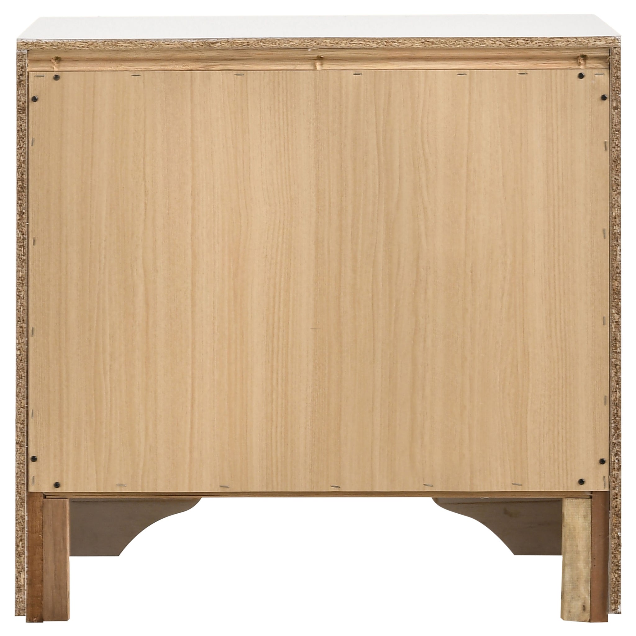 Infused with timeless glamour, this three-drawer nightstand brings refined character to any bedroom. Its linear profile is accented by elegant framing and a glittering center panel that conceals a hidden felt-lined drawer, ideal for delicate accessories. Smooth metal-extension glides ensure effortless drawer operation, while crystal-inspired pulls catch the light with radiant sparkle. Built from engineered wood and finished in a textured laminate veneer, it delivers durability with sophisticated transitional charm. Key Features: • Three-drawer nightstand with smooth full-extension glides • Hidden felt-lined drawer concealed behind glitter accent panel • Crystal drawer pulls enhance the glamorous design • Bright white finish with subtle textural detail on sides • Classic bracket base offers transitional styling • Crafted from engineered wood with laminate surfaces
