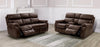 Enjoy luxury and comfort with this top grain leather match living room set. Multiple power recline footrests allow you to raise your leg and relax, while the power controlled headrests let you sit back in ease. Each recliner is designed to only require as little as three inches off the wall to recline, making this piece quite the space-saver as well. Plush cushions and oversized pillow top armrests provide the most ideal environment for resting. The loveseat comes with storage console featuring two cupholders and a USB port so your drinks and phone are within reach all the time.