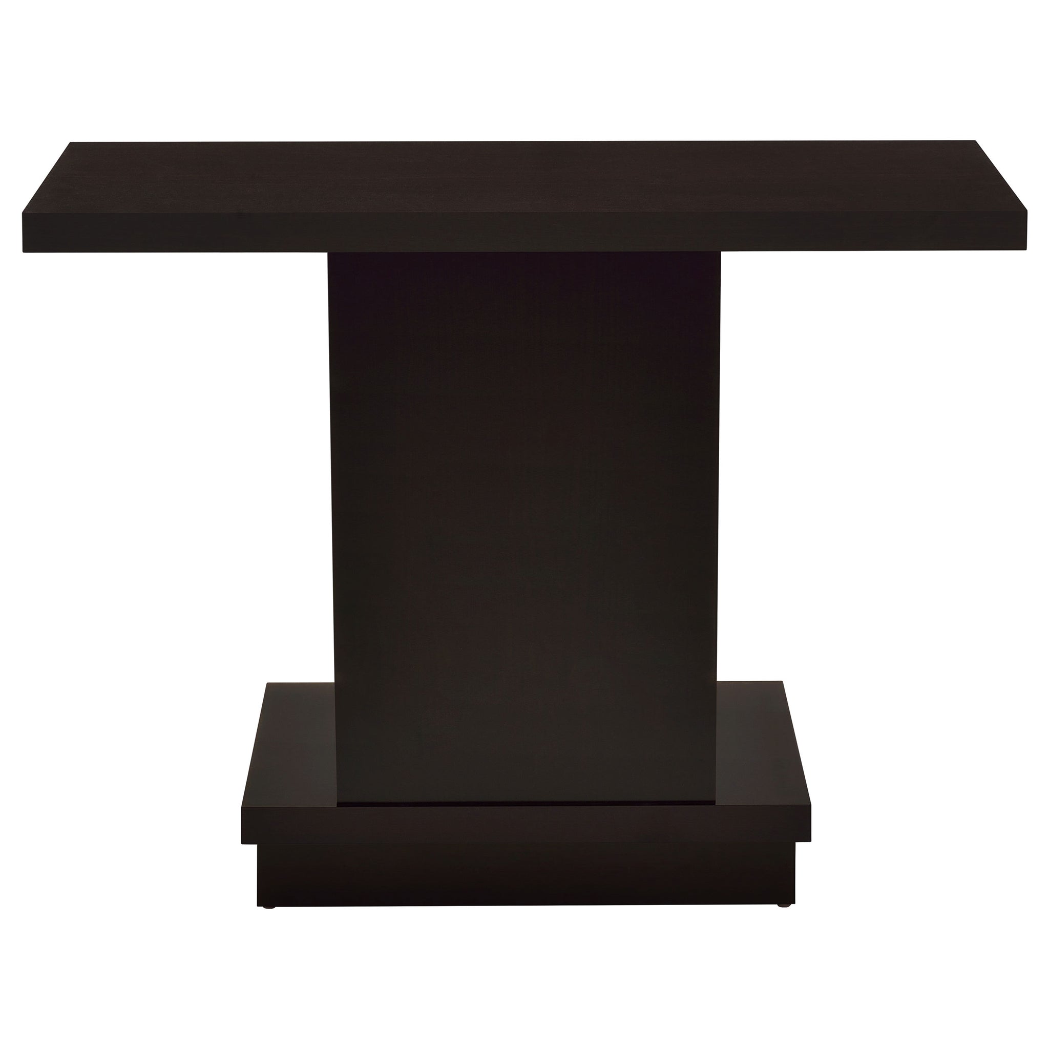 This sofa table delivers modern elegance with clean geometric lines and a versatile rectangular profile. Crafted from engineered wood with a scratch-resistant laminate veneer, it showcases a rich cappuccino finish that exudes contemporary charm. The spacious tabletop provides ample room for decor, storage, or everyday essentials. Perfect for use behind a sofa or in an entryway, this console table seamlessly blends style and functionality in any space. Key Features: • Sofa table with a sleek geometric design and clean, bold lines • Cappuccino finish adds warmth and contemporary elegance • Scratch-resistant laminate veneer ensures long-lasting appeal • Spacious tabletop offers plenty of room for decor or essentials • Engineered wood construction provides strength and durability • Ideal for placement behind a sofa or in entryways and hallways