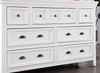 Take serenity home with this dresser from the Castile collection. Topped with beautiful crown molding details, the bold panel drawers are window pane-inspired. Finally, the finish and the nickel cup pulls and round knobs complement each other well in tone and hue.