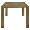 Create an inviting focal point in your dining room or breakfast nook with a modern wood dining table. Its rectangular profile is the ultimate in versatility, perfect for savoring meals with friends and family. A brown finish over oak veneer brings inviting natural character to the table, perfect for daily and special occasion enjoyment. The table boasts a simple silhouette, complete with a square edge and round post legs. The rounded corners of the tabletop soften the strong, robust look and feel of this charming table. Key Features: • Simple and inviting, this modern wood dining table features a rectangular silhouette • A brown finish over oak veneer creates a warm, natural look and feel in your kitchen or dining room • Features four round column legs for robust support and a touch of fluidity and movement • Tabletop has a true square edge profile with rounded corners to complement the legs • Crafted from rubberwoods and engineered wood to create strength and durability