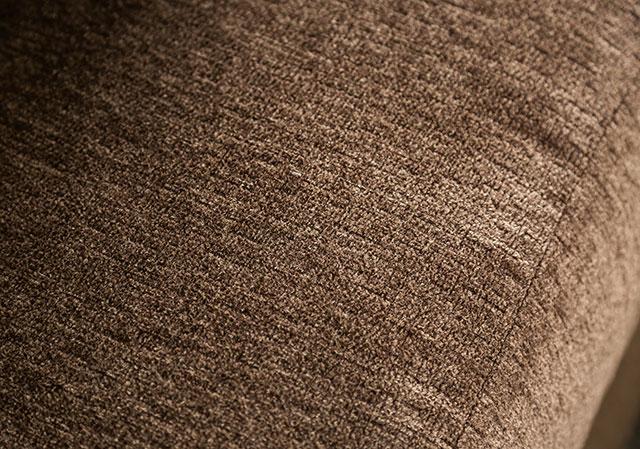 FARRINGDON Sectional, Brown, 102"L X 70"W X 40"H, 340lbs. The biggest room in your home deserves the very best piece. The stylish look of this oversized sectional will bring great warmth and comfort to your living room, with its curved arms and attached chaise. Upholstered in chenille, its neutral shade allows it to work in a plethora of home decor motifs. Soft pastel pillows only add to its undeniable charm. From rustic farmhouse to a more modern space, the clean lines and muted palette will ensure a perfect fit.