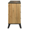 Add a touch of elegance to your bedroom with this spacious dresser, combining mid-century modern design with a rustic wood grain effect. The weathered brown and natural pine finish is beautifully complemented by matte black finished metal pull handles. Crafted from engineered 3D paper veneer and featuring English dovetail drawer joinery, this dresser offers durability and style. The center metal drawer glides ensure smooth operation, while the ample storage space keeps your essentials organized and easily accessible. Key Features: • Spacious dresser with mid-century modern and rustic design • Weathered brown and natural pine finish with matte black metal pull handles • Crafted from durable engineered 3D paper veneer • English dovetail drawer joinery for added durability • Center metal drawer glides for smooth drawer operation