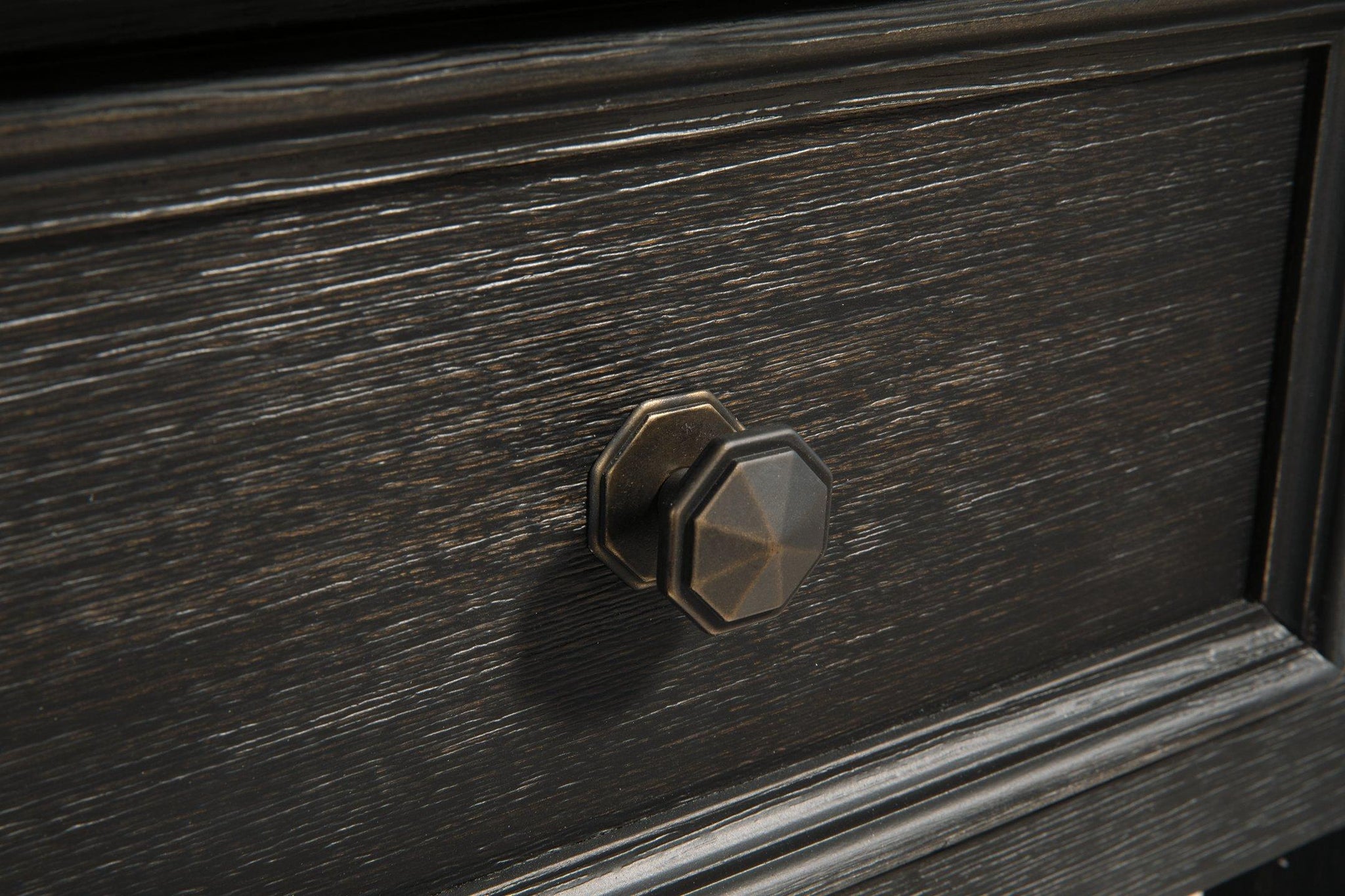 Shabby chic with a hint of down home country. This occasional table set with textured black finish is all the talk of today’s design world. Wood grain shows through the weathered gray-brown top in all of its earthy pleasure. Smooth-gliding drawers and cabinet make it easy for you to store away your belongings in style. Lift top transforms your space into a workstation without a hitch.